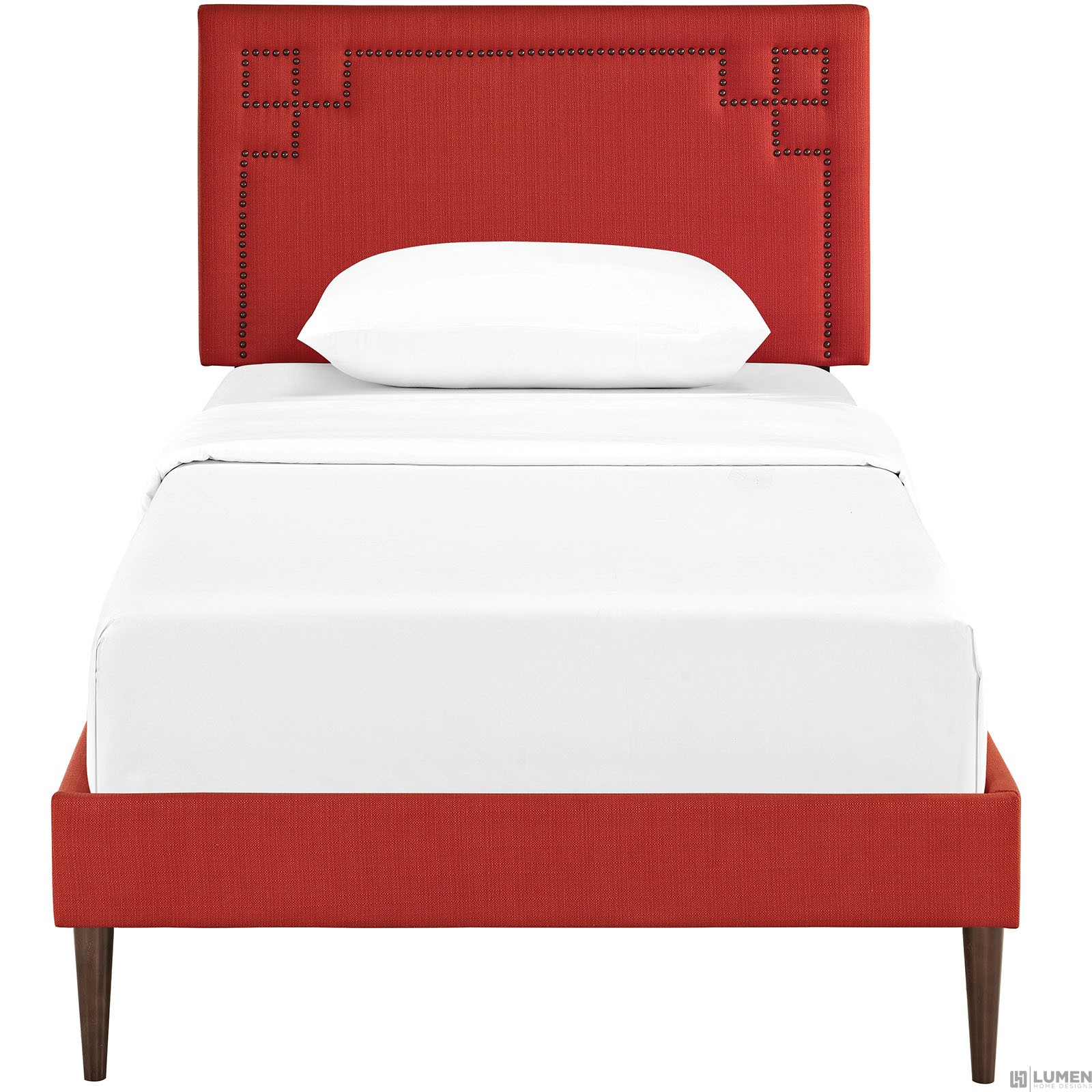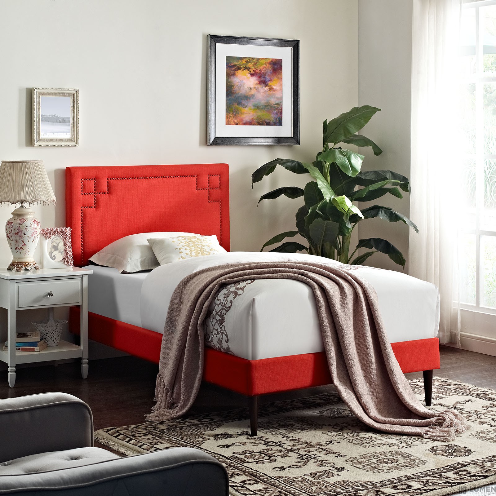 Short Description Fine Polyester Upholstery Ten Wood Support Slats Wood Frame / Particleboard Panel Center Rail with Support Two Legs Mounts in Four Locations Dense Foam Padding Non-Marking Foot Glides