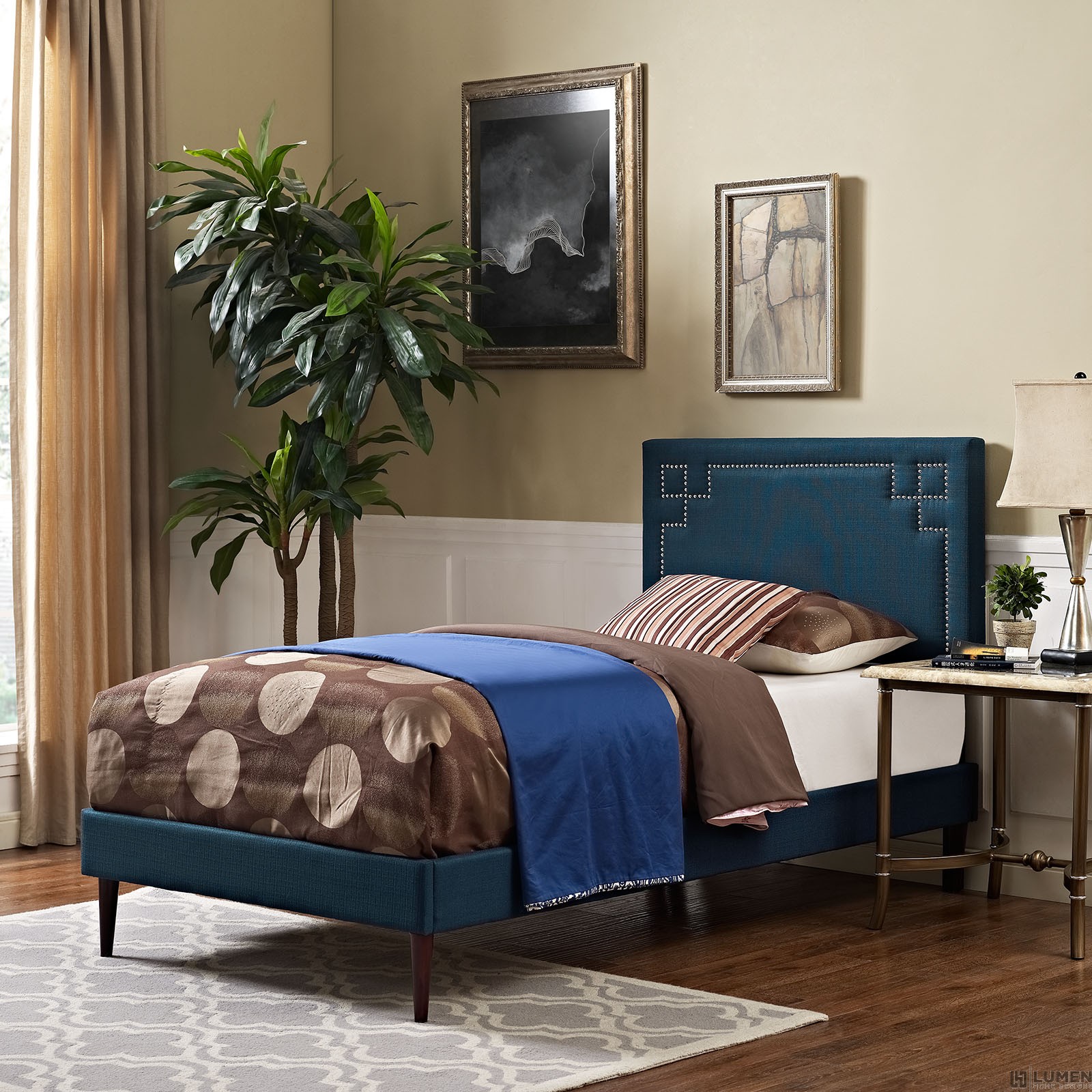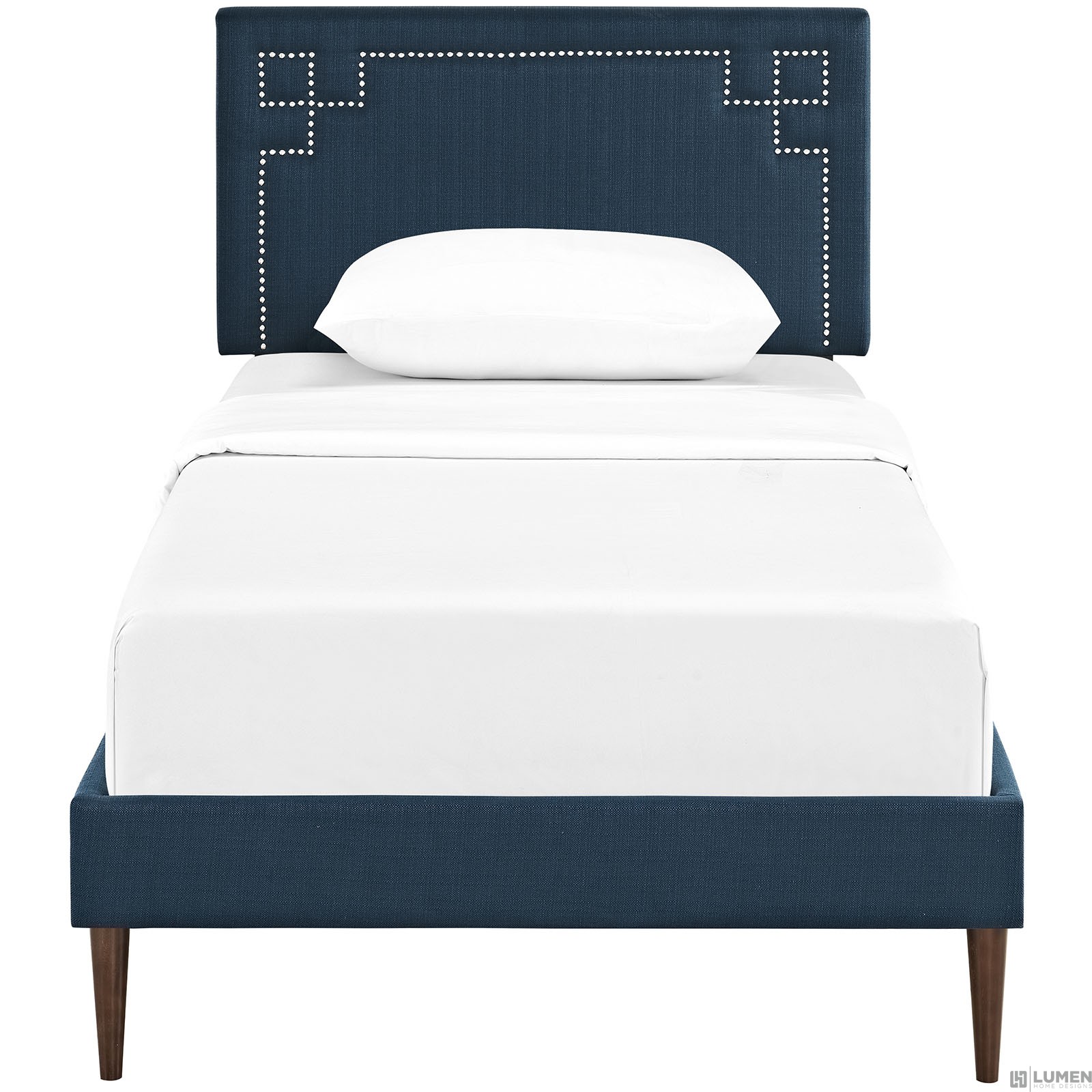 Short Description Fine Polyester Upholstery Ten Wood Support Slats Wood Frame / Particleboard Panel Center Rail with Support Two Legs Mounts in Four Locations Dense Foam Padding Non-Marking Foot Glides