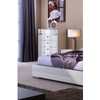 From our Madison Bedroom set, this eye catching chest will add elegance to any decor scheme. Its vertical layout will help you maximize floor space, while its ample drawers give you enough room to store bulky essentials like seasonal clothes and linens. The high shine finish bounces off the light keeping the room airy and open. As with the rest of our Madison Set, this chest was crafted using premium solid woods and natural lacquers. Chic stainless steel knobs complete this look. Matching bed, dresser, mirror and nightstands are also available. Essentials about this piece: Expertly crafted using solid wood veneers and natural lacquers. Stainless steel hardware. Premium soft closing tracks. No assembly required. Color scheme: Light Grey, high gloss. Dimensions: 45" H x 35.5" L x 18.5" D. Other pieces in this set sold separately.