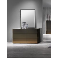 Short Description From our Plaza Bedroom set, the always popular six drawer dresser design gets a modern update. It features a sleek and cool gold lacquer finish, which will add glam and warm up your bedroom. All of the drawers come with premium closing tracks for a softer movement. Our Plaza dresser has been expertly made using premium wood veneers and natural gold lacquers. Matching bed, chest and nightstands are also available. Essentials about this piece: Expertly crafted using solid wood veneers and natural lacquers. Premium soft closing tracks. No assembly required. Color scheme: Gold. Dimensions: 31" H x 53.1" L x 18" D. Other pieces in this set sold separately.