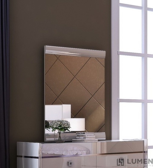 From our Madison Bedroom set, this dresser features elegant storage drawers that can accommodate anything from piles of clothes to toys and electronics. These are complemented by an asymmetrical tabletop. The built in division of this open space will help you keep things separate and organized. Our Madison dresser was handcrafted using high quality wood veneers, natural lacquers and delicate stainless steel accents. Matching bed, chest, mirror and nightstands are also available. Essentials about this piece: Expertly crafted using solid wood veneers and natural lacquers. Stainless steel hardware. Premium soft closing tracks. No assembly required. Color scheme: Light Grey, high gloss. Dimensions: 34" H x 64" L x 18.5" D. Other pieces in this set sold separately.