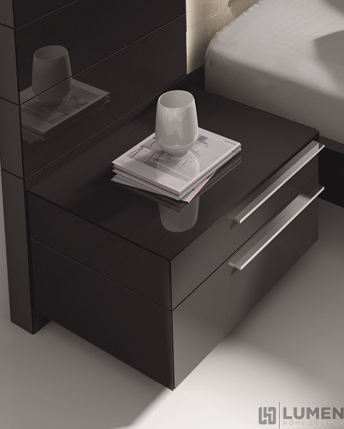 From our Hanover Bedroom set, this dresser is a handsome storage option for your favorite room. Its vertical layout will help you make the most of your available floor space. While three narrower drawers allow for easy storage of accessories and other smaller items, three wider drawers can comfortably house bulky sweaters and other linens. As with the rest of our Hanover Set, this dresser was handcrafted using premium solid woods and sleek black lacquers. Modern stainless steel handles complete this look. Matching bed and nightstands are also available. Essentials about this piece: Expertly crafted using solid wood veneers and natural lacquers. Stainless steel hardware. Premium soft closing tracks. No assembly required. Color scheme: Black, high gloss. Dimensions: 40.6" H x 47" L x 17.8" D. Other pieces in this set sold separately.