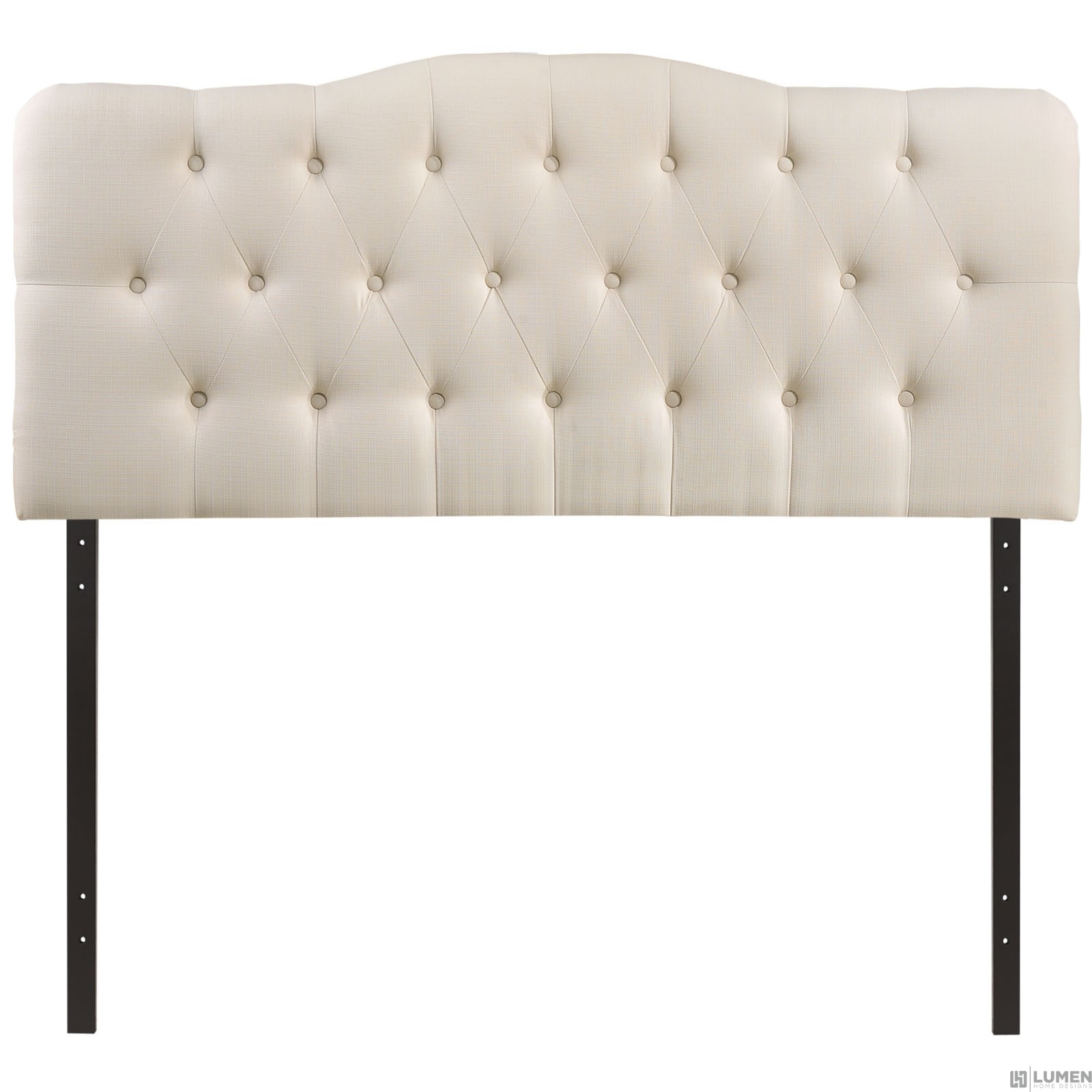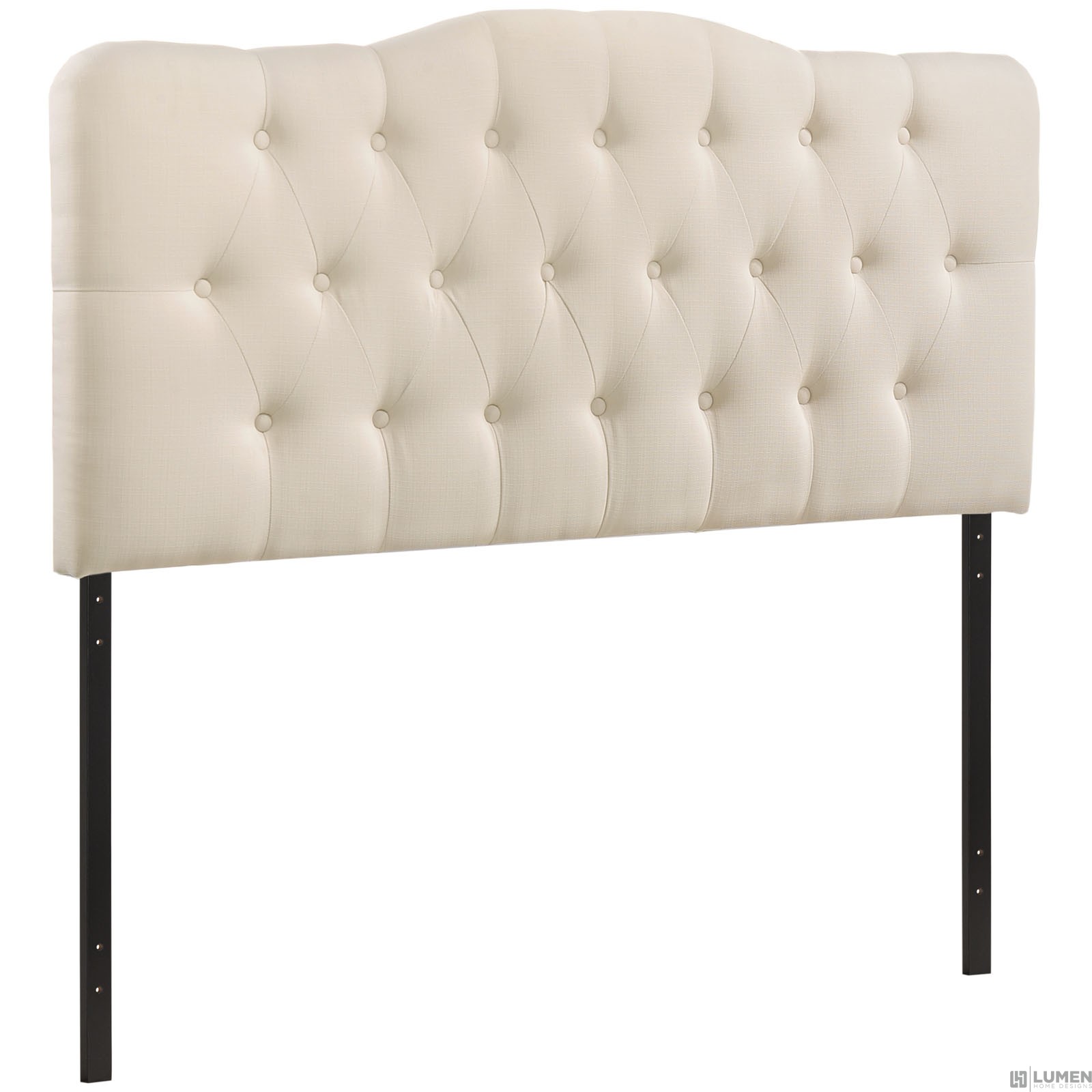 Short Description Elegant tufted button headboard Deep inset buttons Fine polyester upholstering Fiberboard and plywood frame
