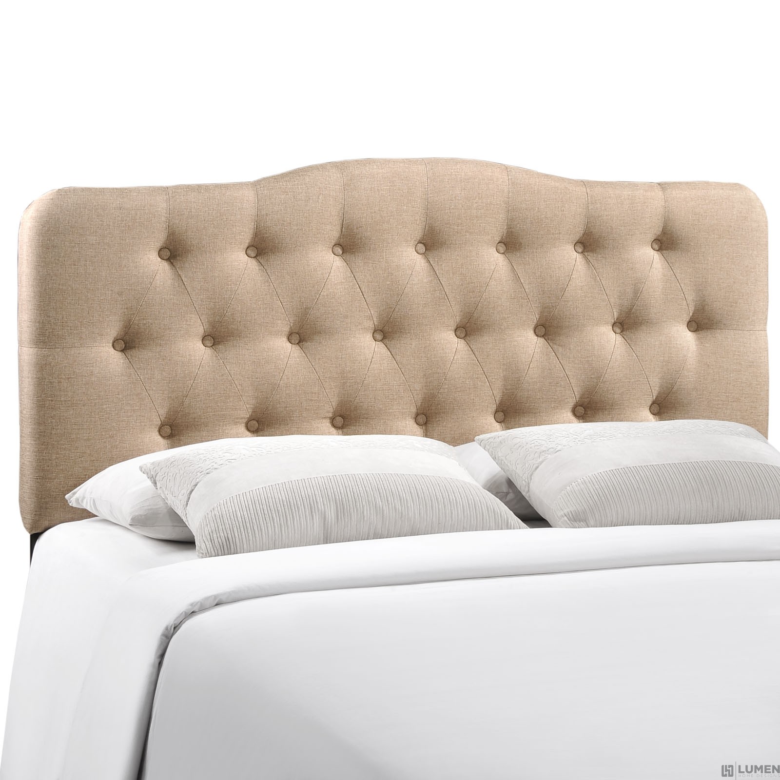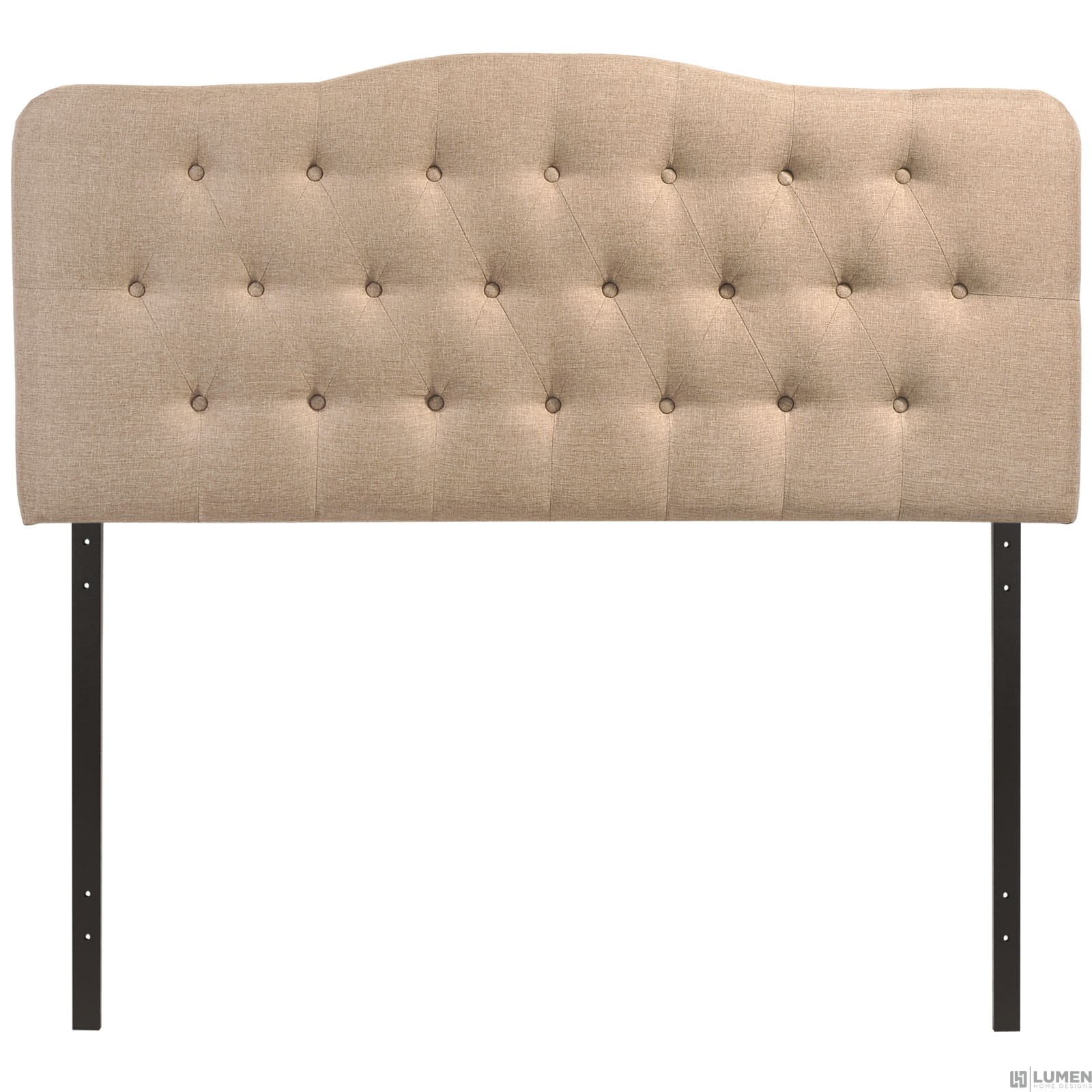 Short Description Elegant tufted button headboard Deep inset buttons Fine polyester upholstering Fiberboard and plywood frame