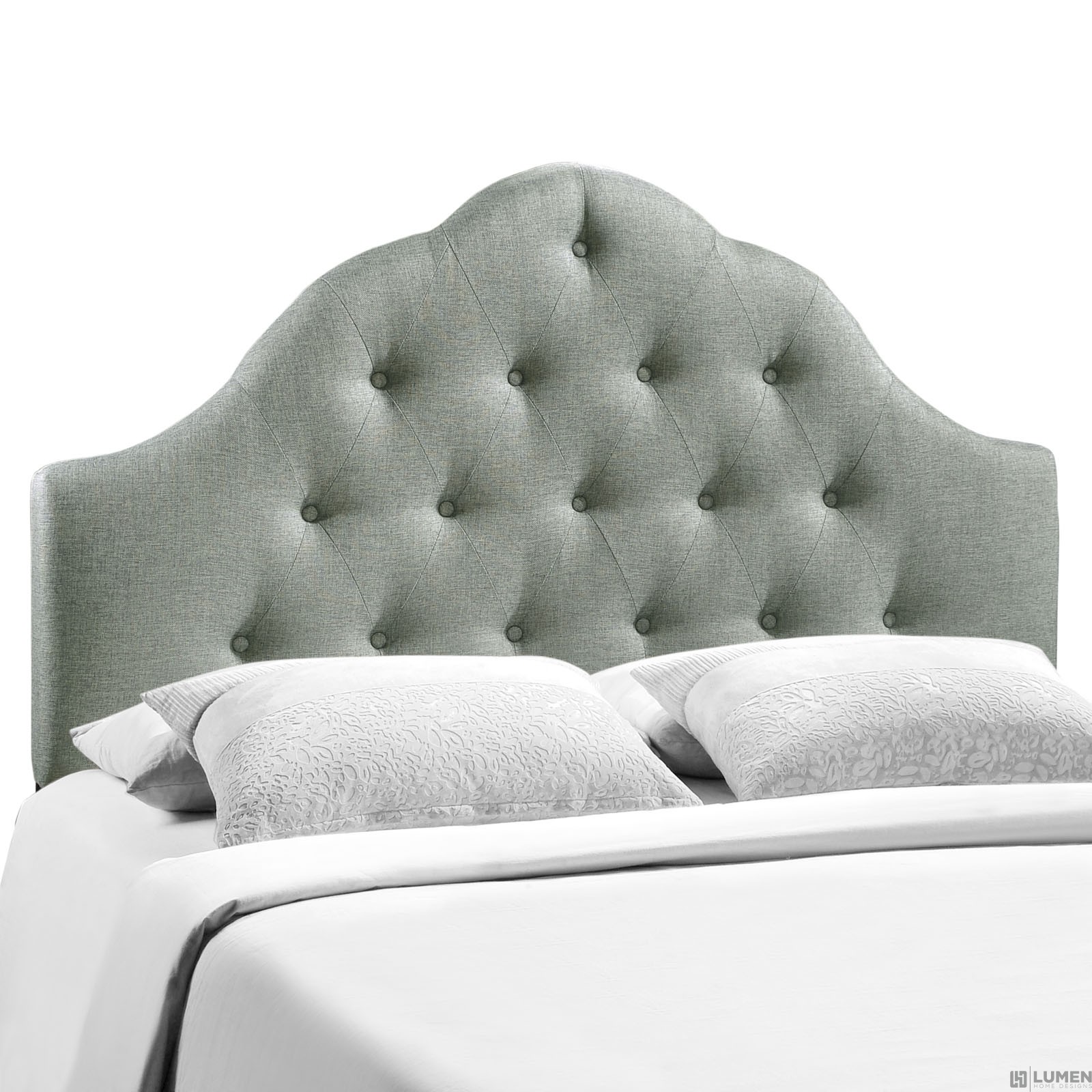 Short Description Elegant modern headboard Tufted high arch Deep inset buttons Padded with foam Fine polyester upholstering