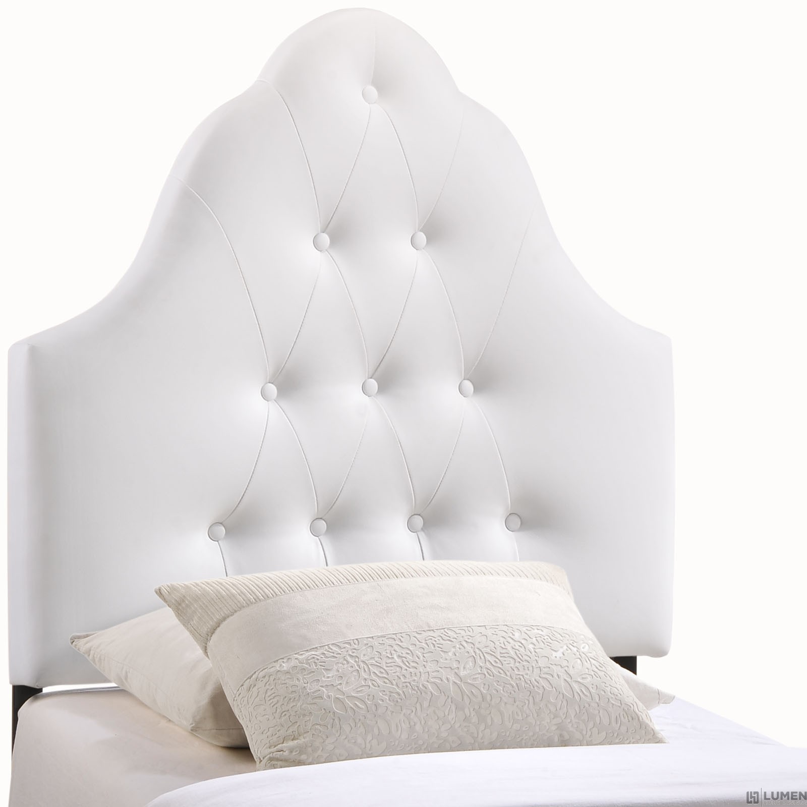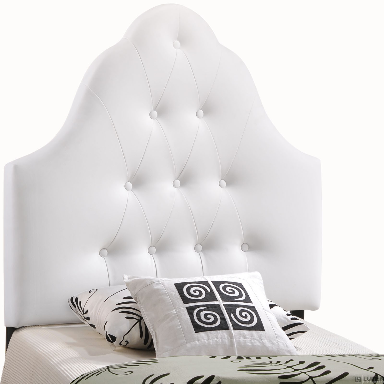 Short Description Elegant modern headboard Tufted high arch Deep inset buttons Padded with foam Fine vinyl upholstering