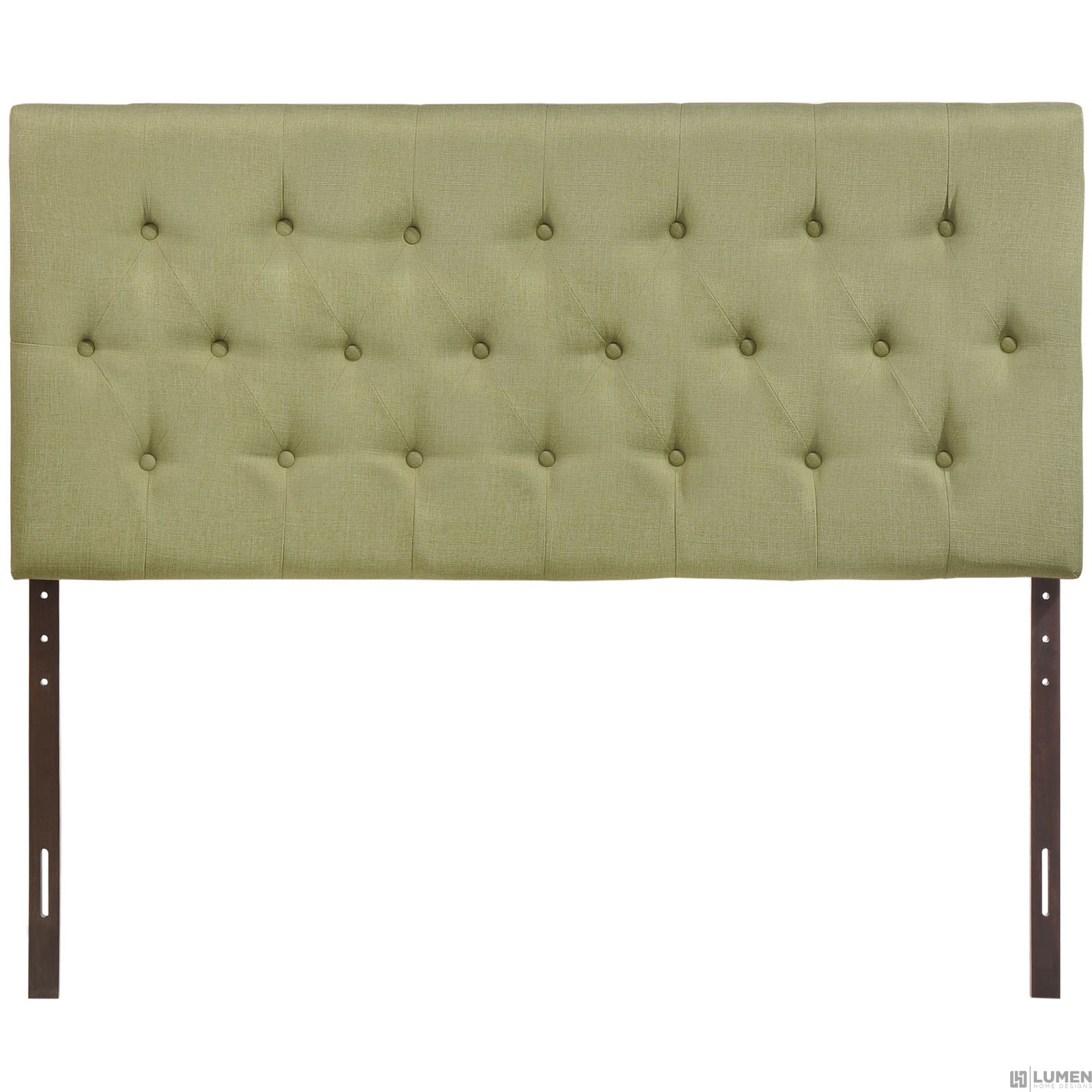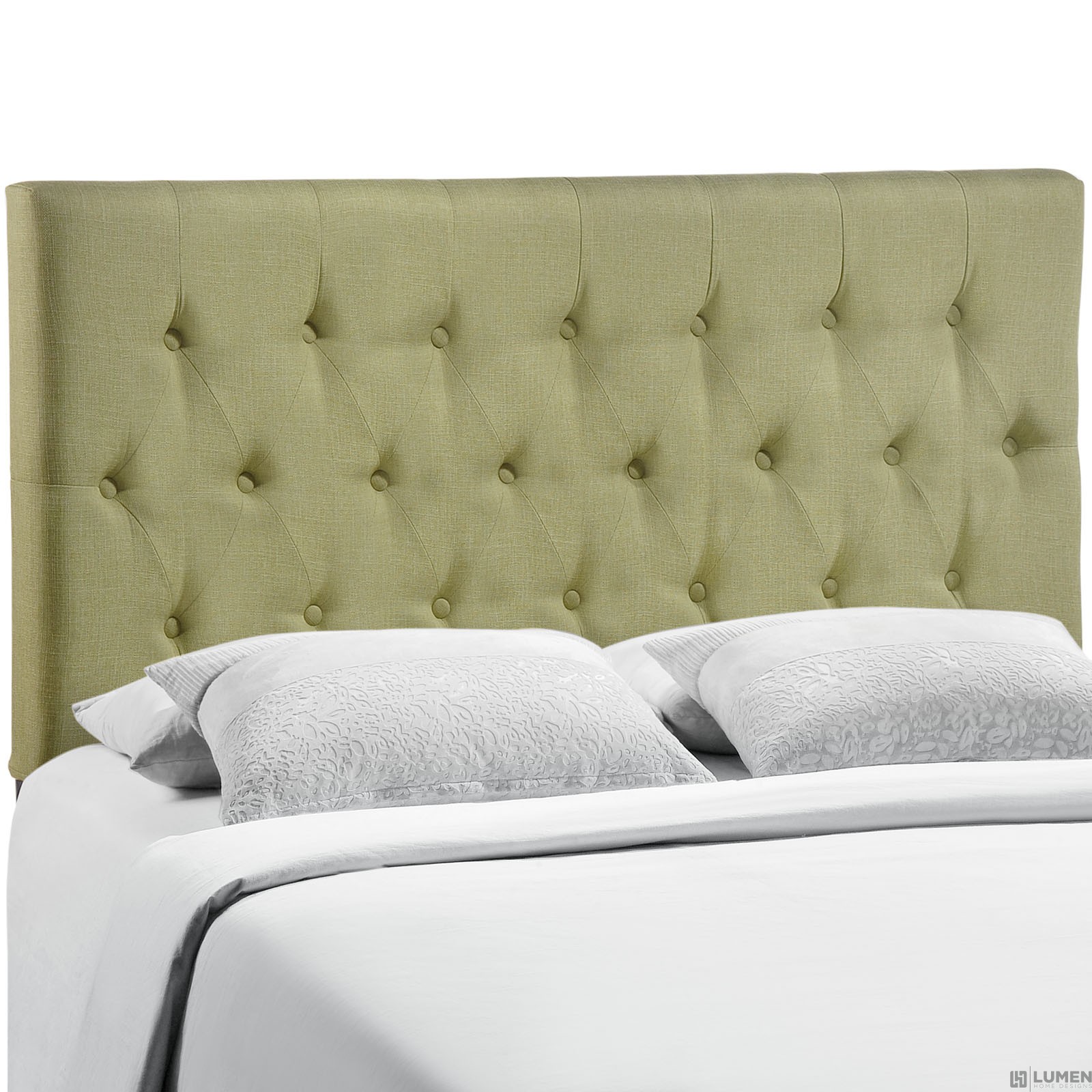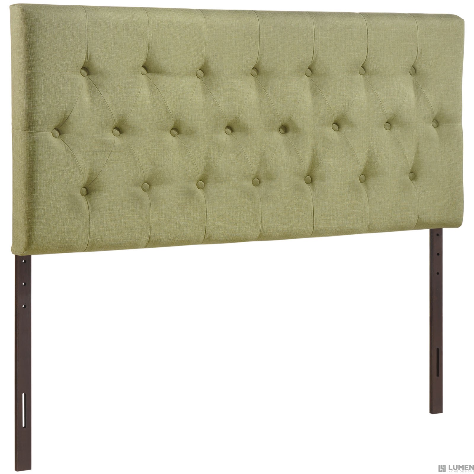 Short Description Contemporary Headboard Elegant deep tufted buttons Fine linen upholstering Fiberboard and solid wood frame Mounts in 4 Locations