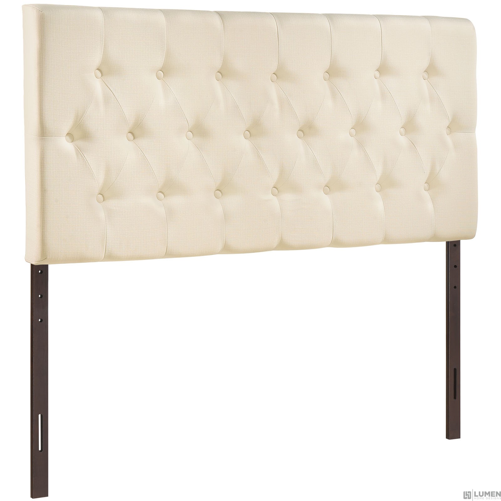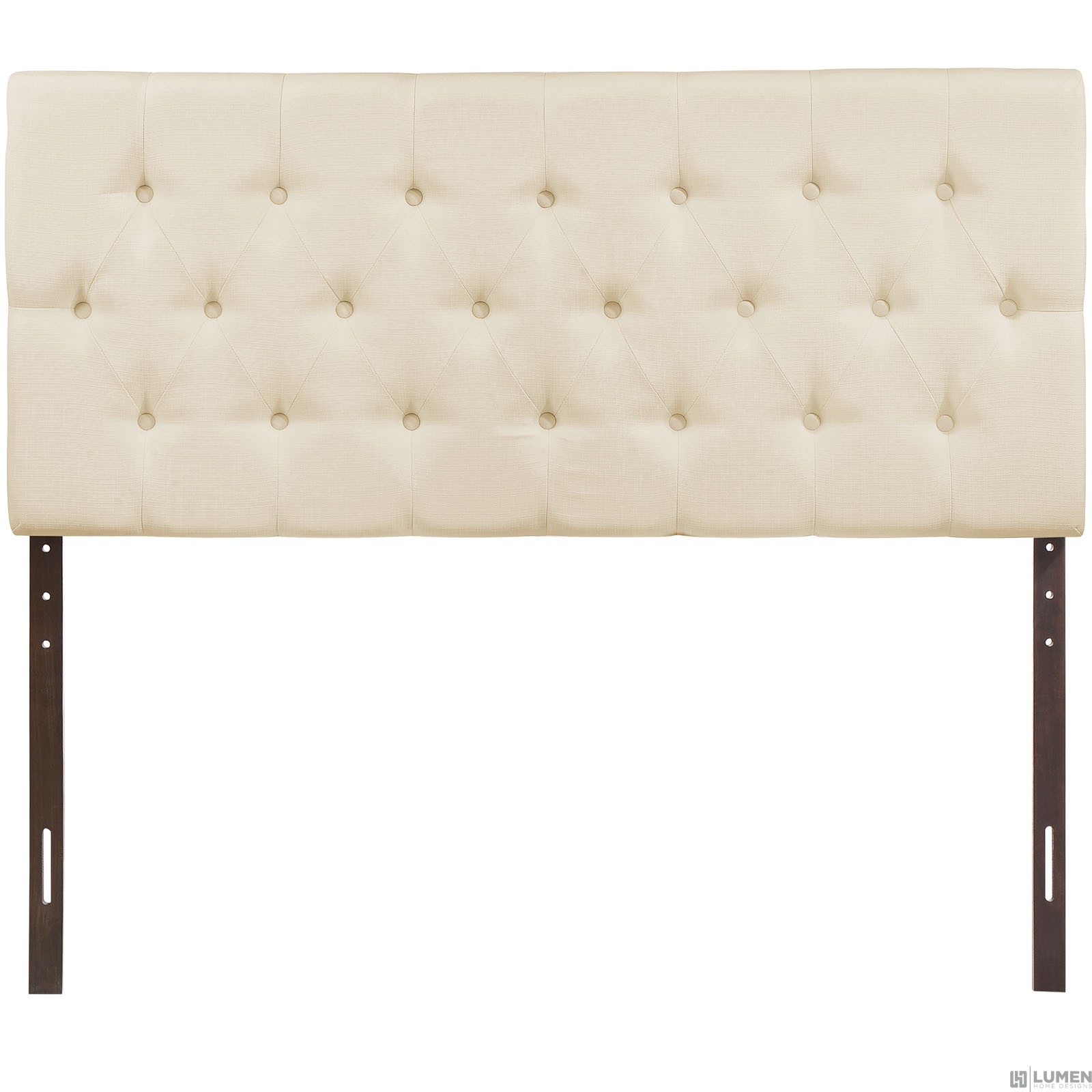Short Description Contemporary Headboard Elegant deep tufted buttons Fine linen upholstering Fiberboard and solid wood frame Mounts in 4 Locations