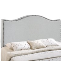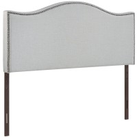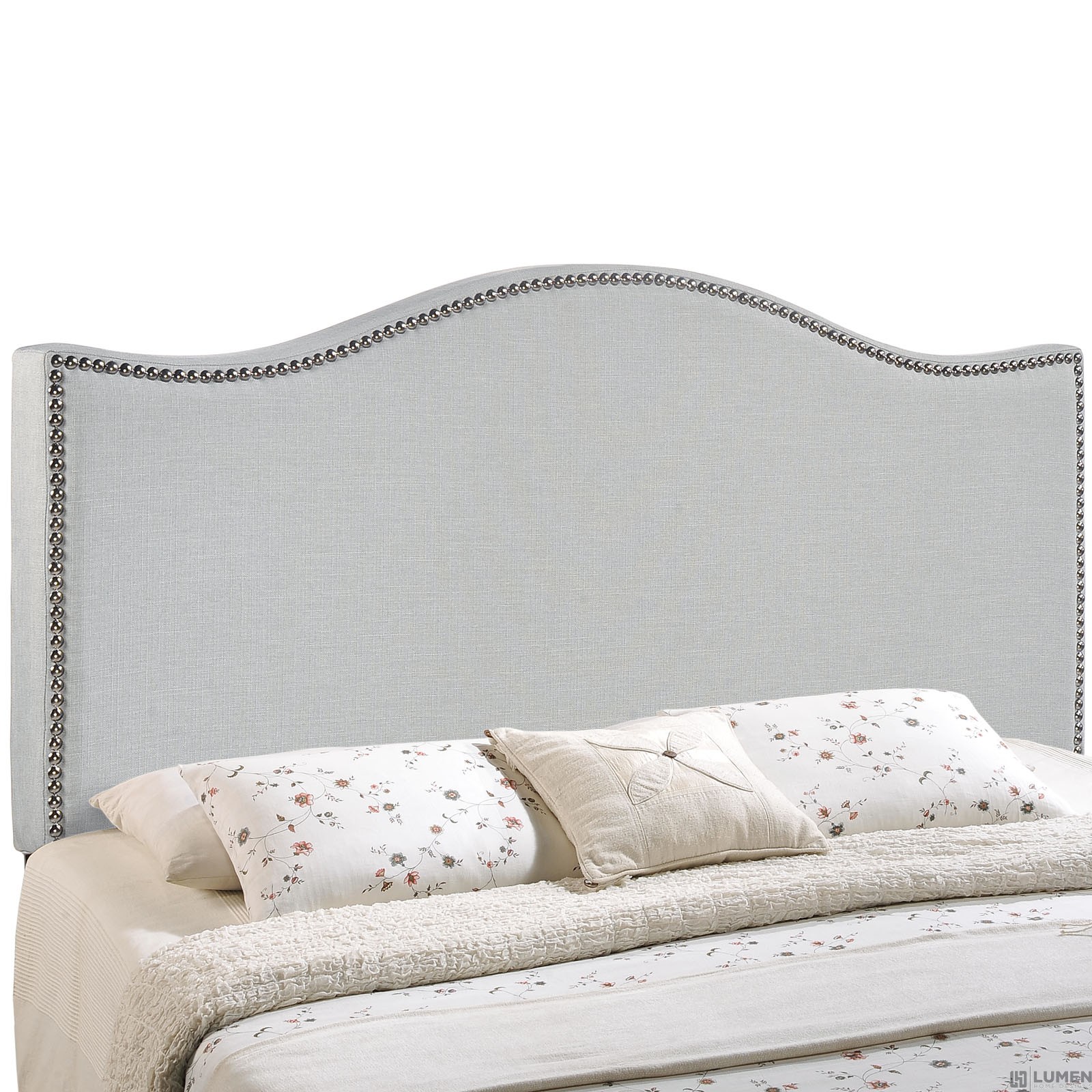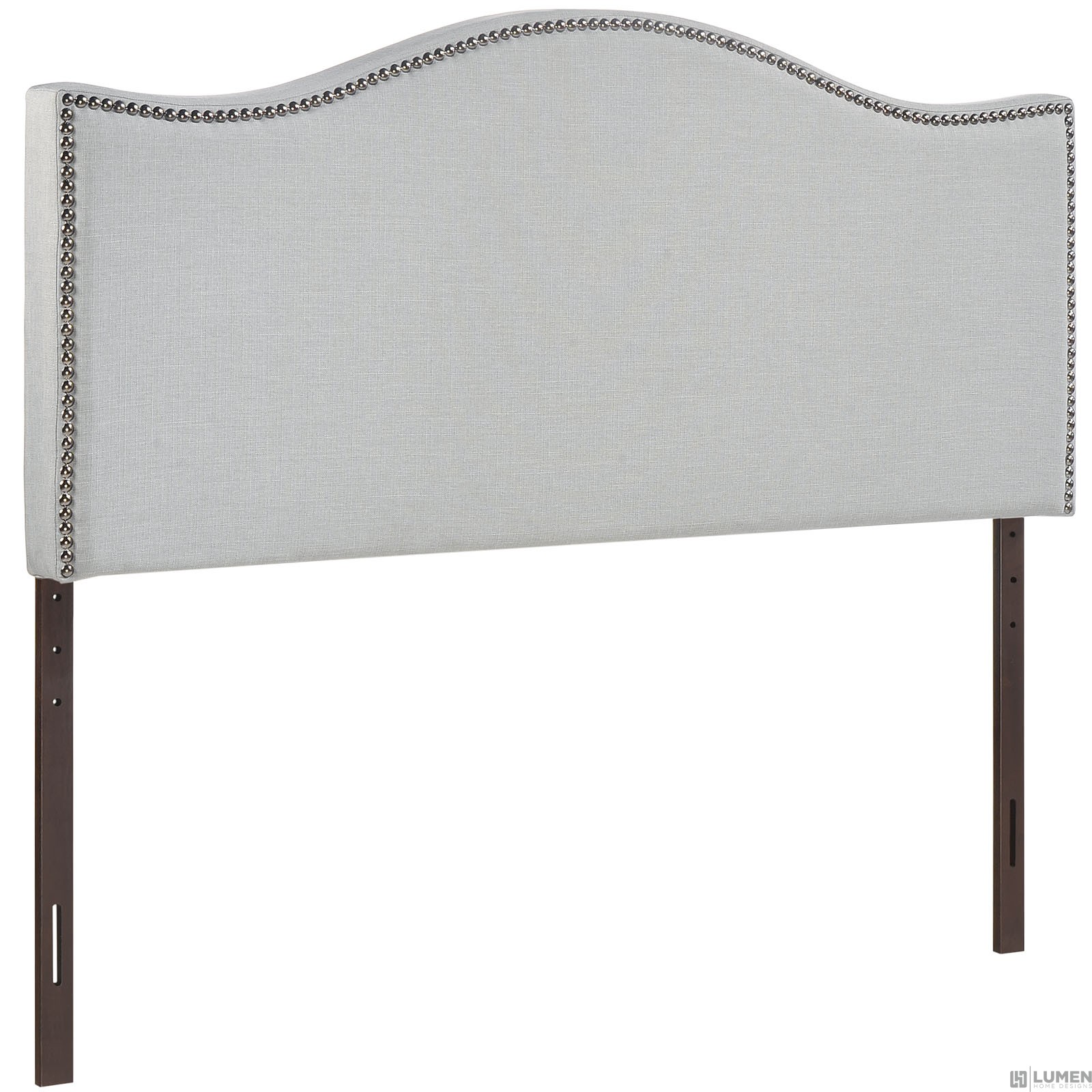 Contemporary headboard Fashionable curve design Nail button trim Fine linen upholstering Mounts in 4 Locations Particleboard and solid wood frame