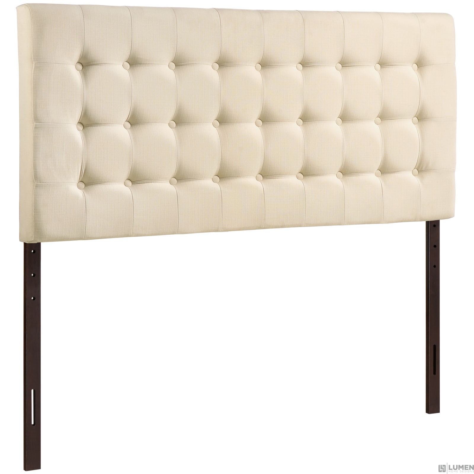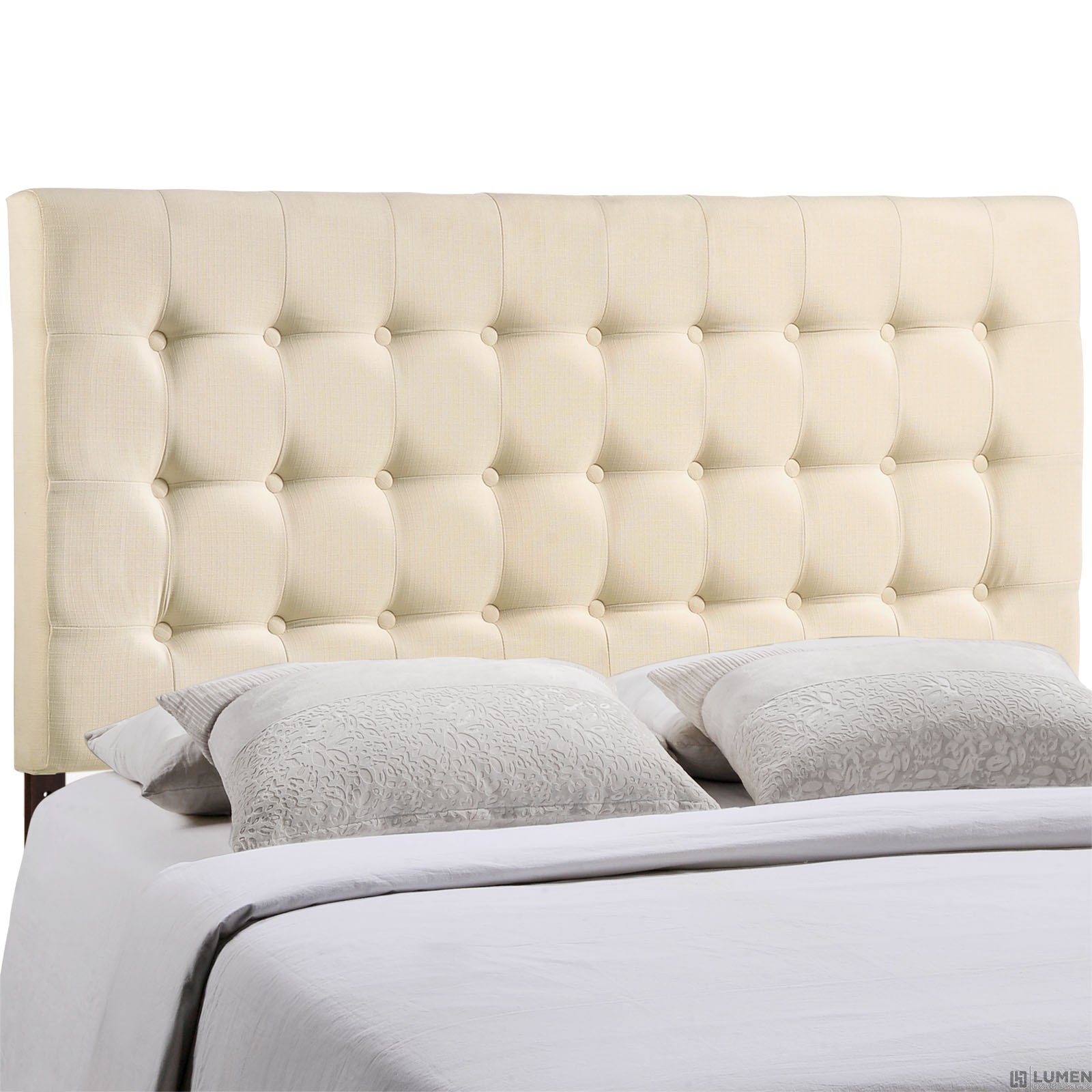 Short Description Elegant tufted button headboard Deep inset buttons Fine linen upholstering Fiberboard and solid wood frame Mounts in 4 Locations