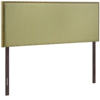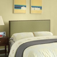 Contemporary headboard Nail button trim Elegant expansive design Fine linen upholstering Particleboard with solid wood poles Mounts in 4 Locations