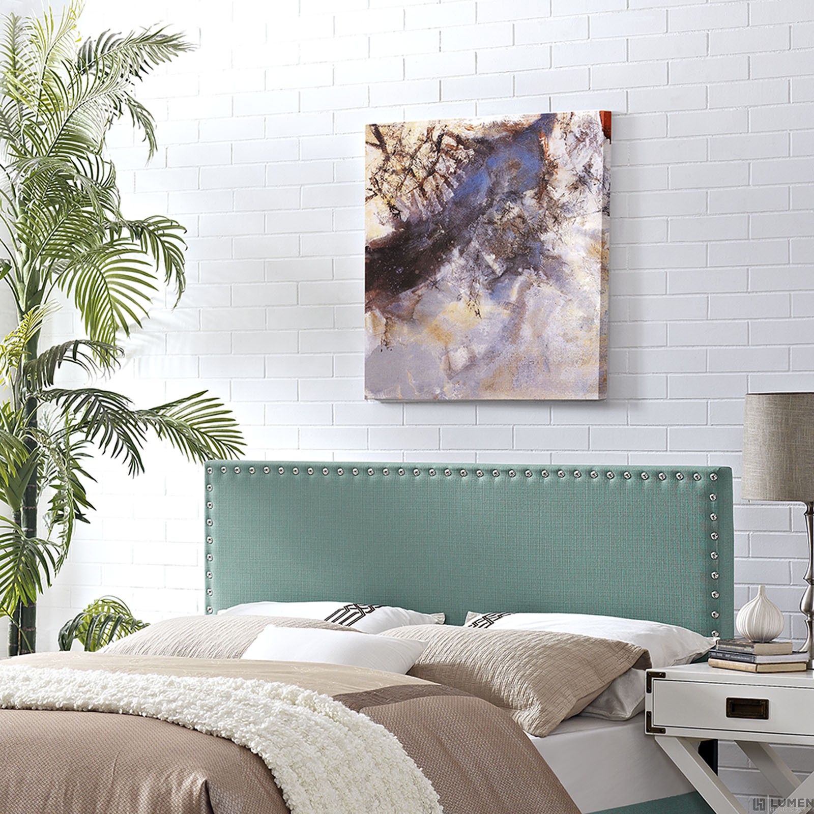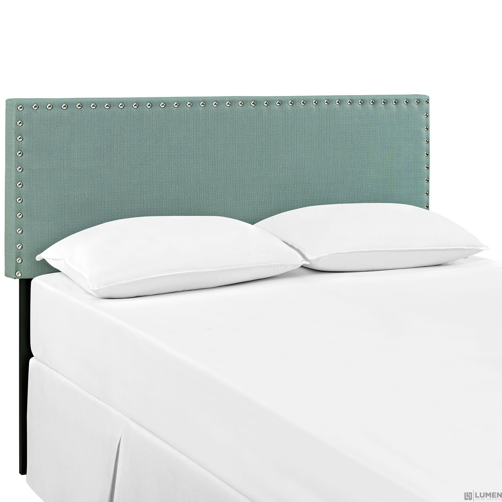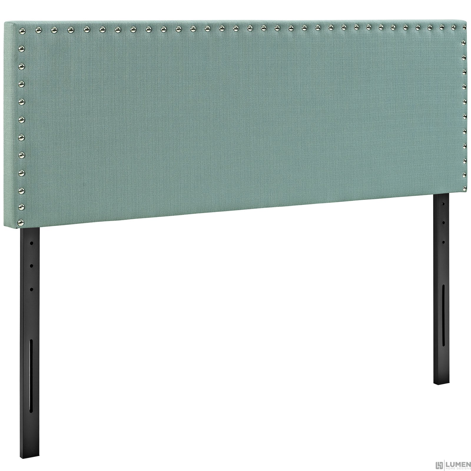 Short Description Fine Polyester Upholstery Silver Accent Copper Buttons Solid Wood Frame Particleboard Panel Dense Foam Padding Mounts in Four Locations Assembly Required