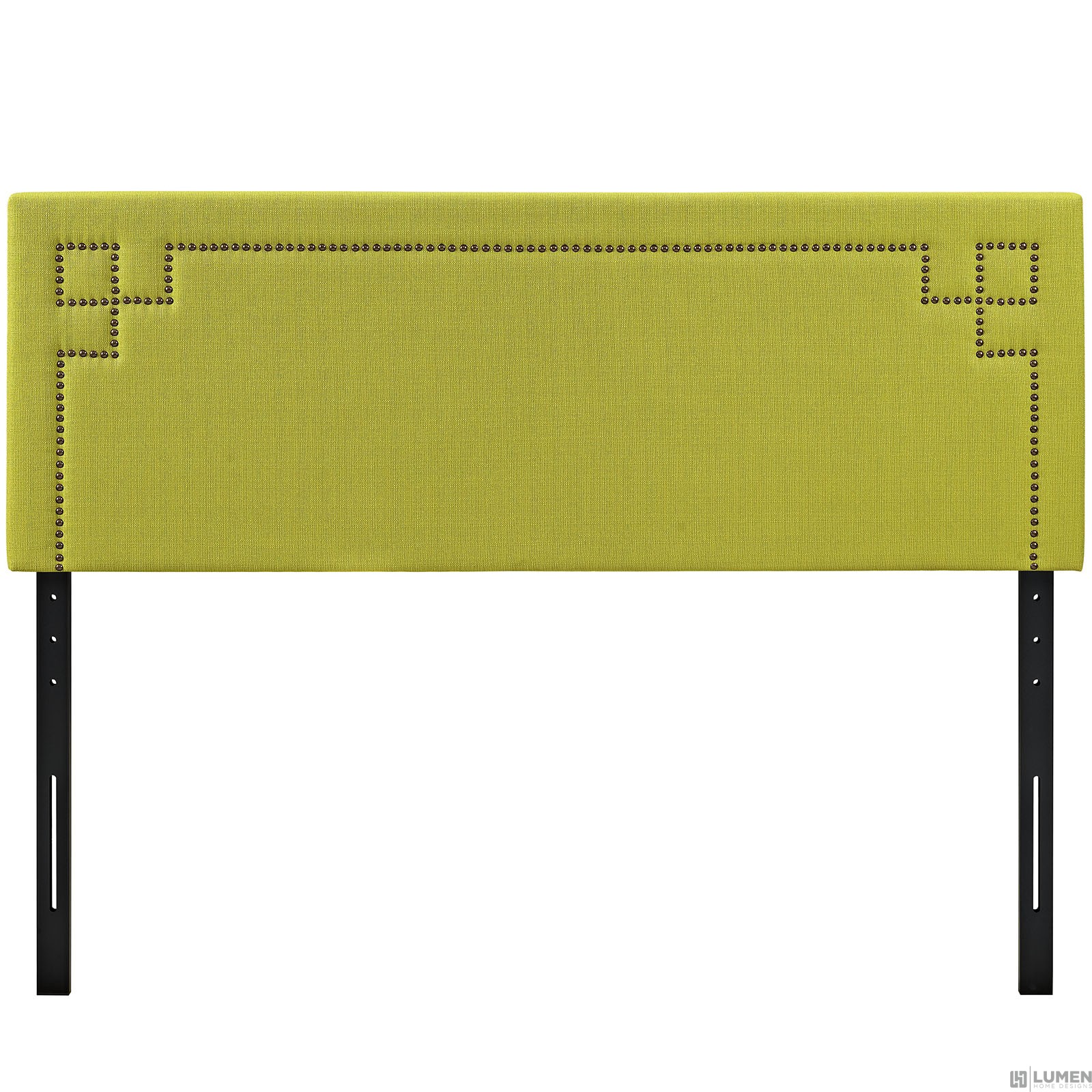 Short Description Fine Polyester Upholstery Silver Accent Copper Buttons Solid Wood Frame Particleboard Panel Dense Foam Padding Mounts in Four Locations Assembly Required
