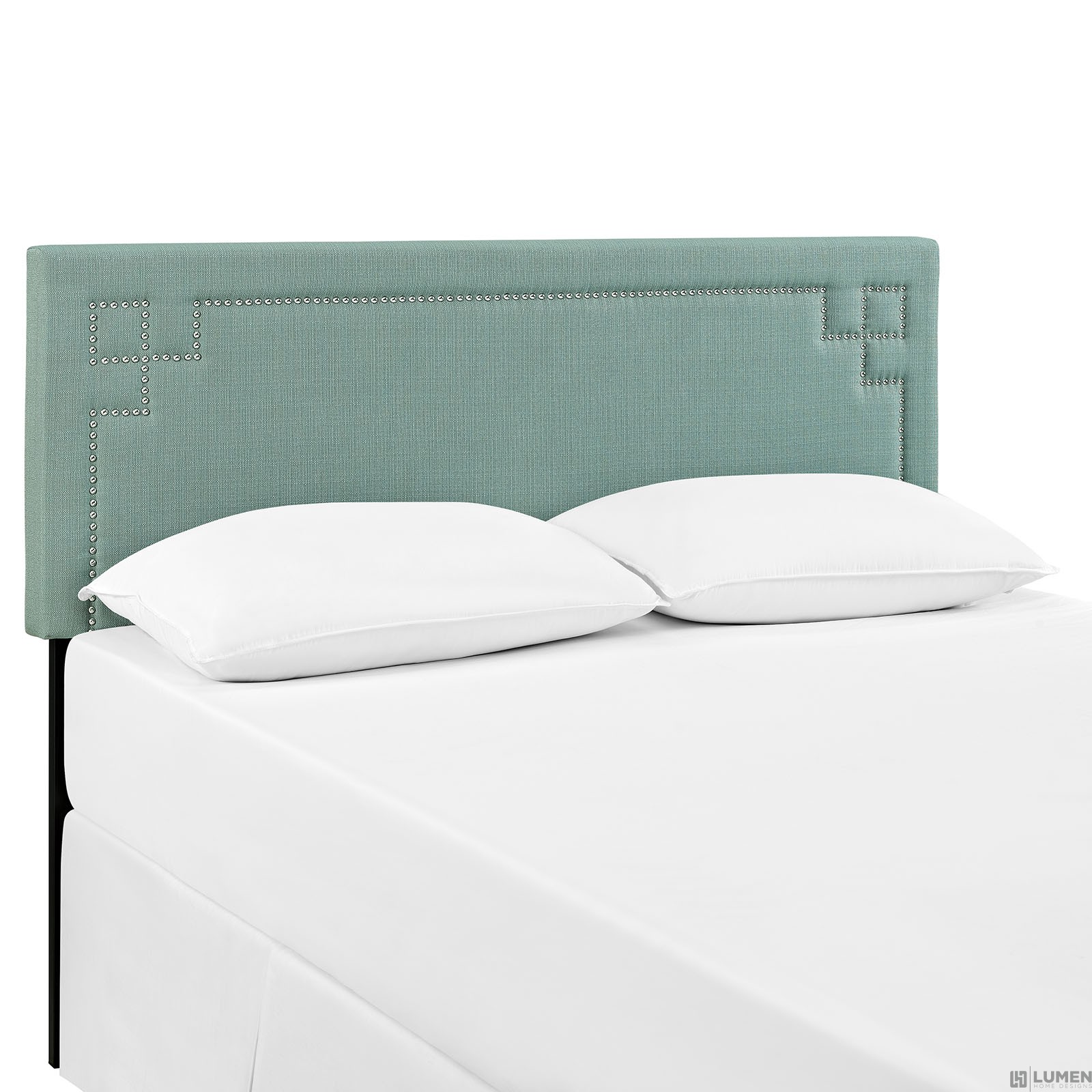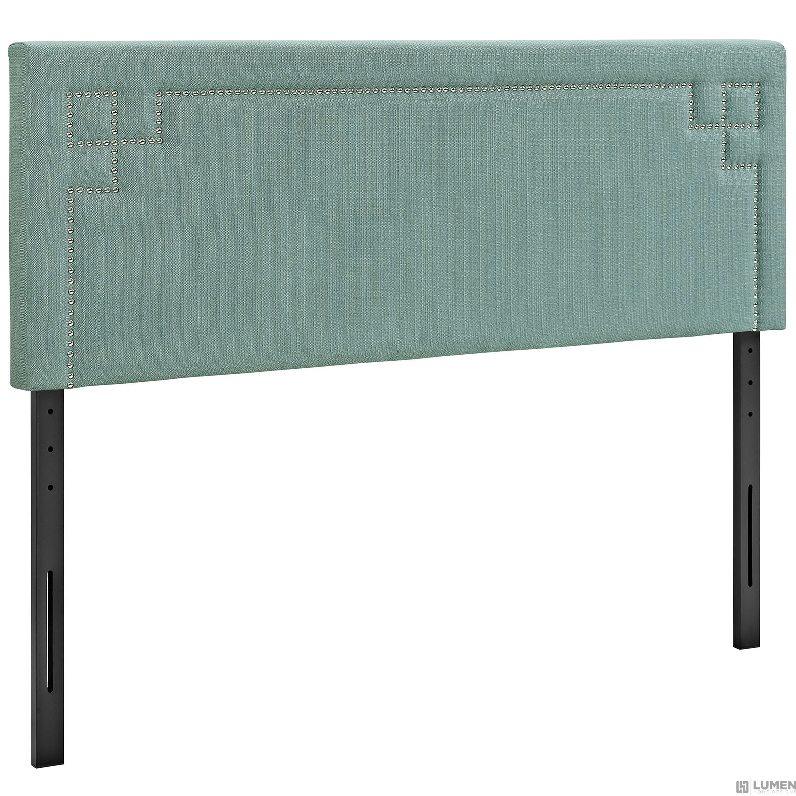 Short Description Fine Polyester Upholstery Silver Accent Copper Buttons Solid Wood Frame Particleboard Panel Dense Foam Padding Mounts in Four Locations Assembly Required