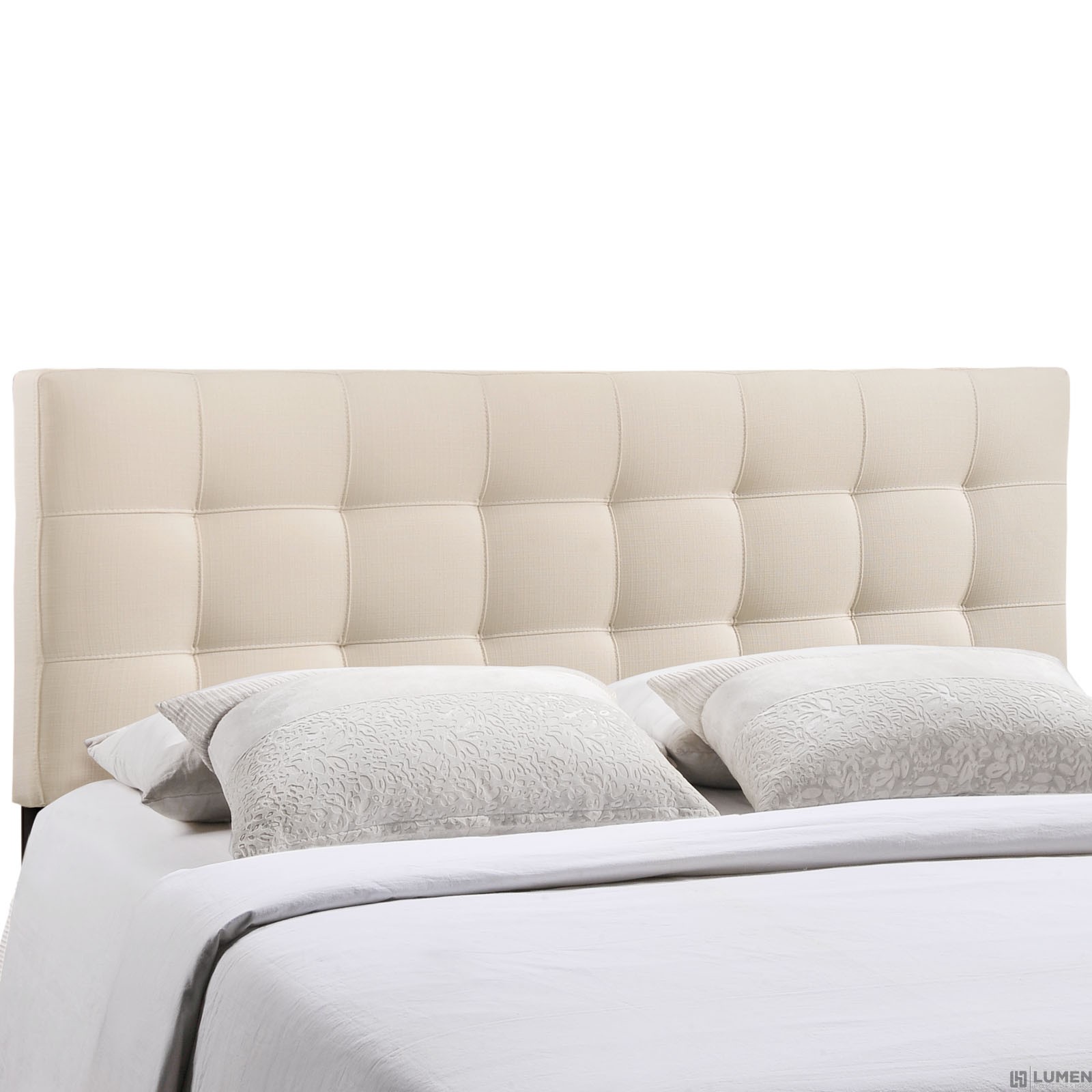 Short Description Elegant tufted button headboard Deep inset buttons Fine polyester upholstering Fiberboard and plywood frame