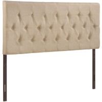 Short Description Contemporary Headboard Elegant deep tufted buttons Fine linen upholstering Fiberboard and solid wood frame Mounts in 4 Locations