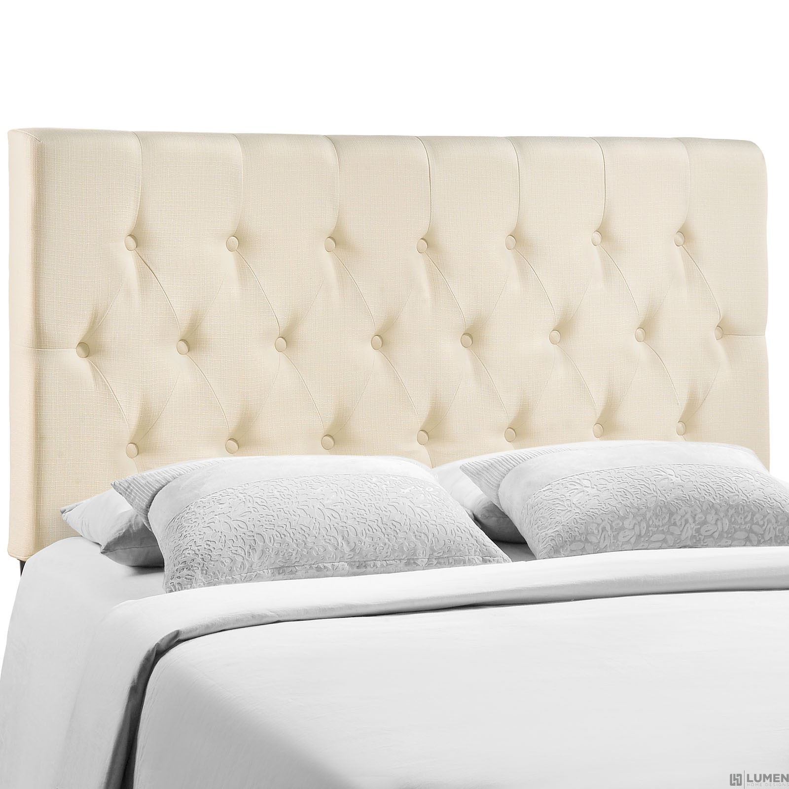 Contemporary Headboard Elegant deep tufted buttons Fine linen upholstering Mounts in 4 Locations Fiberboard and solid wood frame