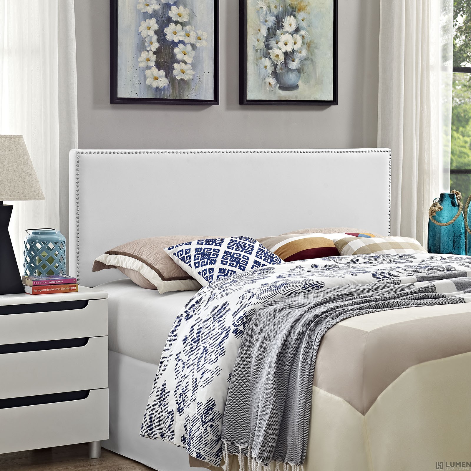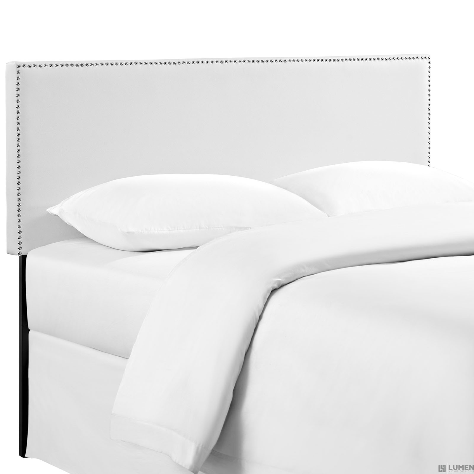 Short Description Fine Vinyl Upholstery Silver Accent Copper Buttons Solid Wood Frame Particleboard Panel Dense Foam Padding Mounts in Four Locations Assembly Required