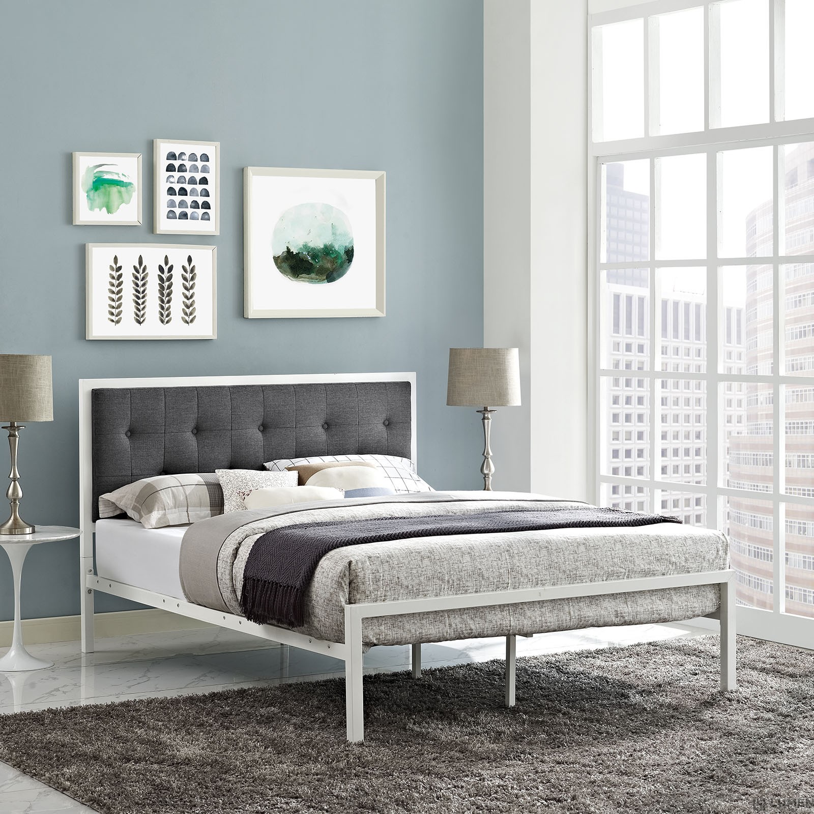 Short Description Platform Bed Frame With Headboard Sturdy Powder Coated Steel Frame Steel Rod Mattress Support System Tufted Button Polyester Headboard Non-Marking Foot Caps Weight Capacity Up To 1300lbs Assembly Required