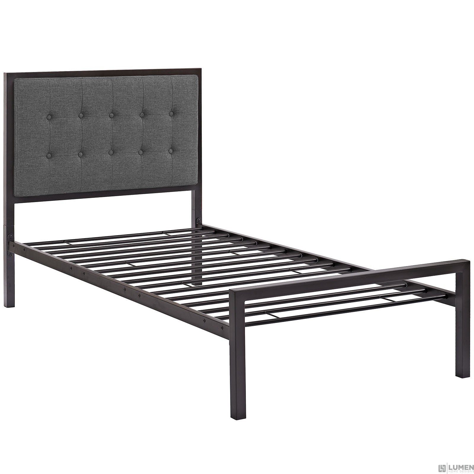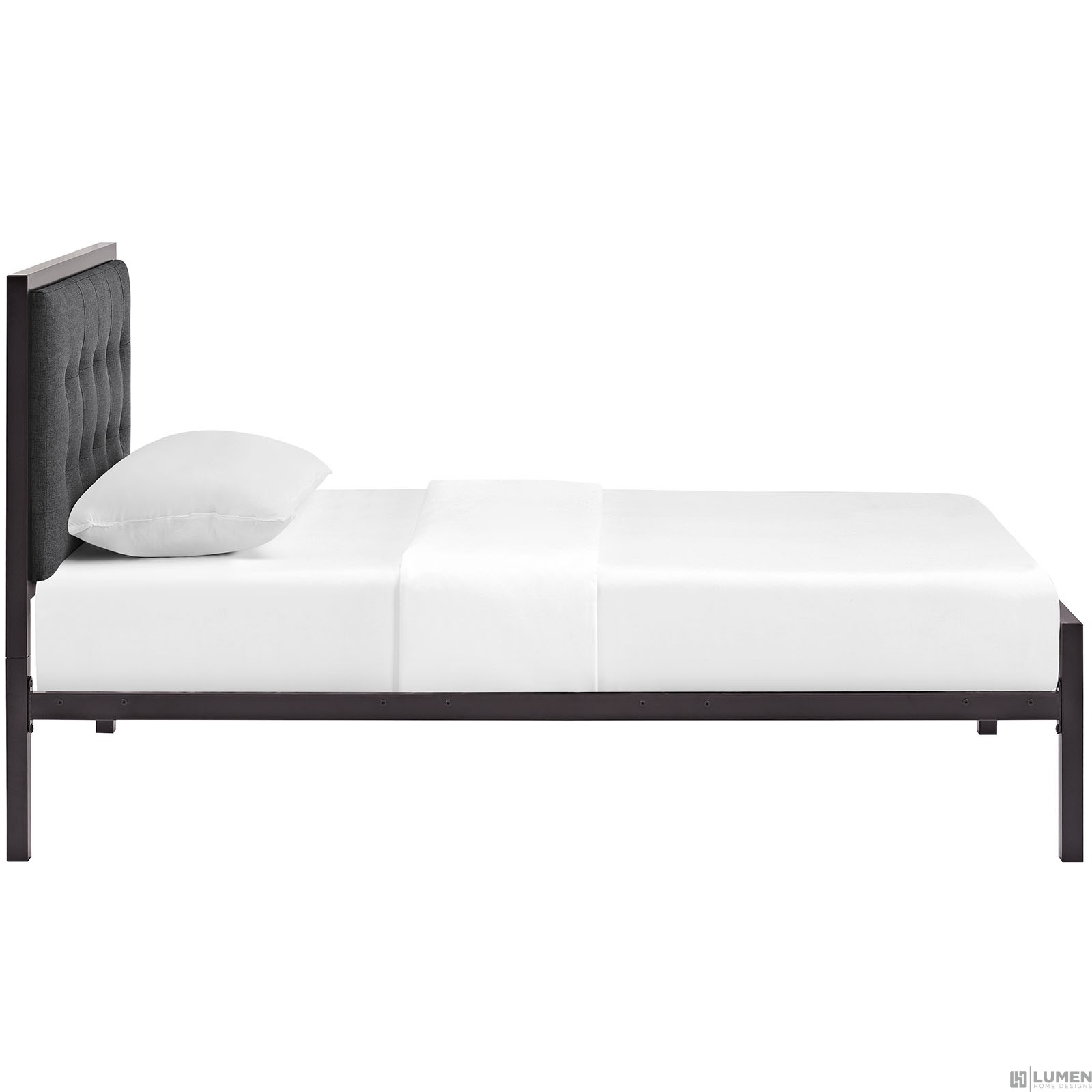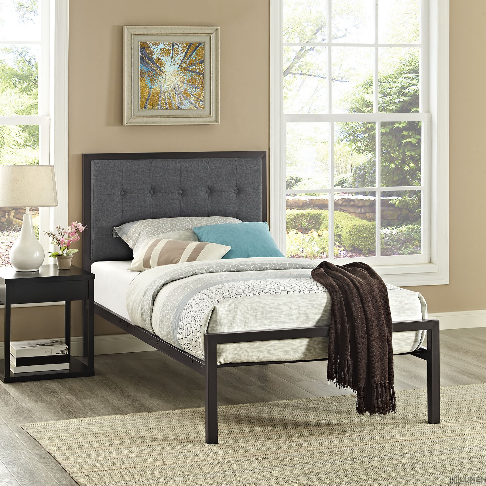 Short Description Platform Bed Frame With Headboard Sturdy Powder Coated Steel Frame Steel Rod Mattress Support System Tufted Button Polyester Headboard Weight Capacity Up To 1300 lbs Non-Marking Foot Caps Assembly Required