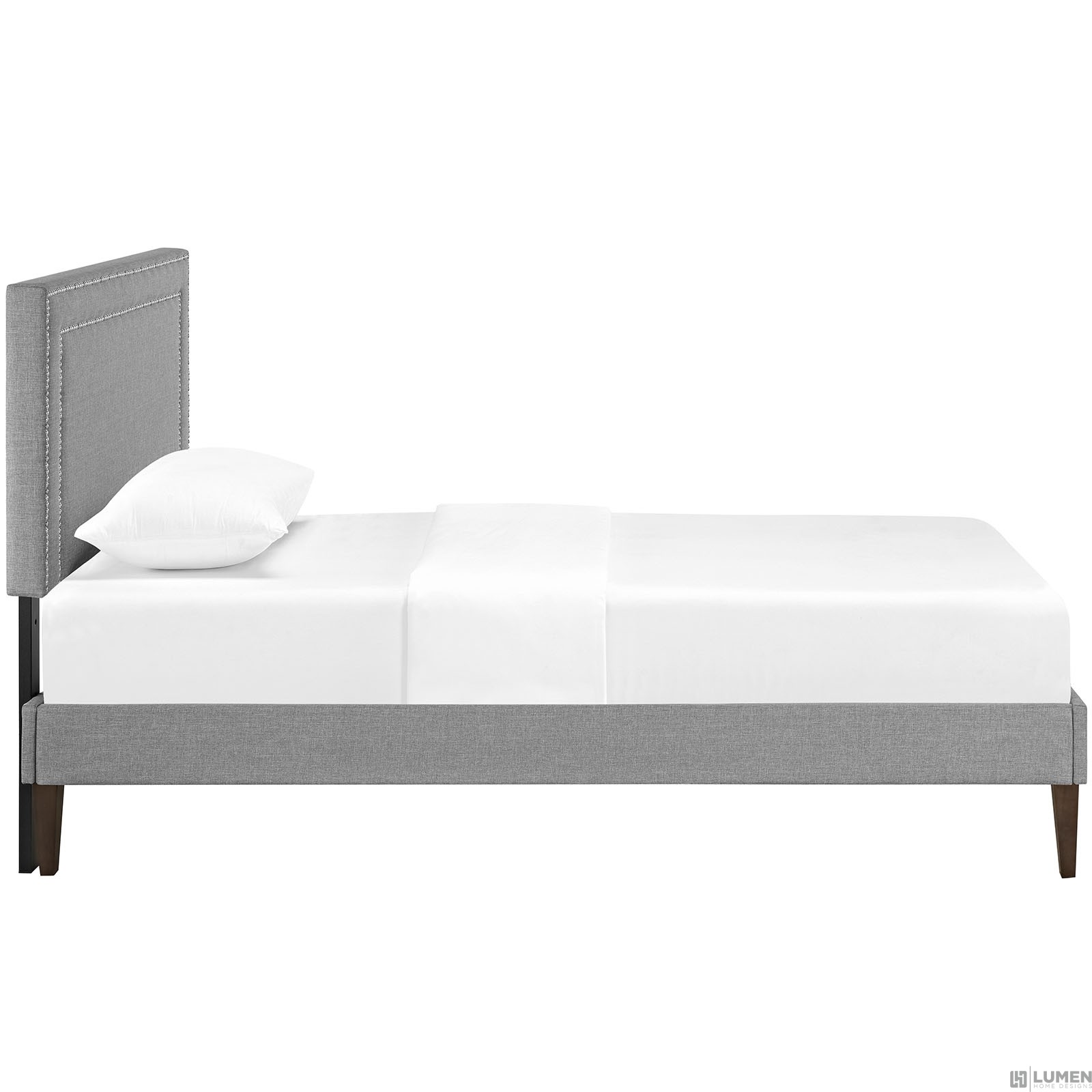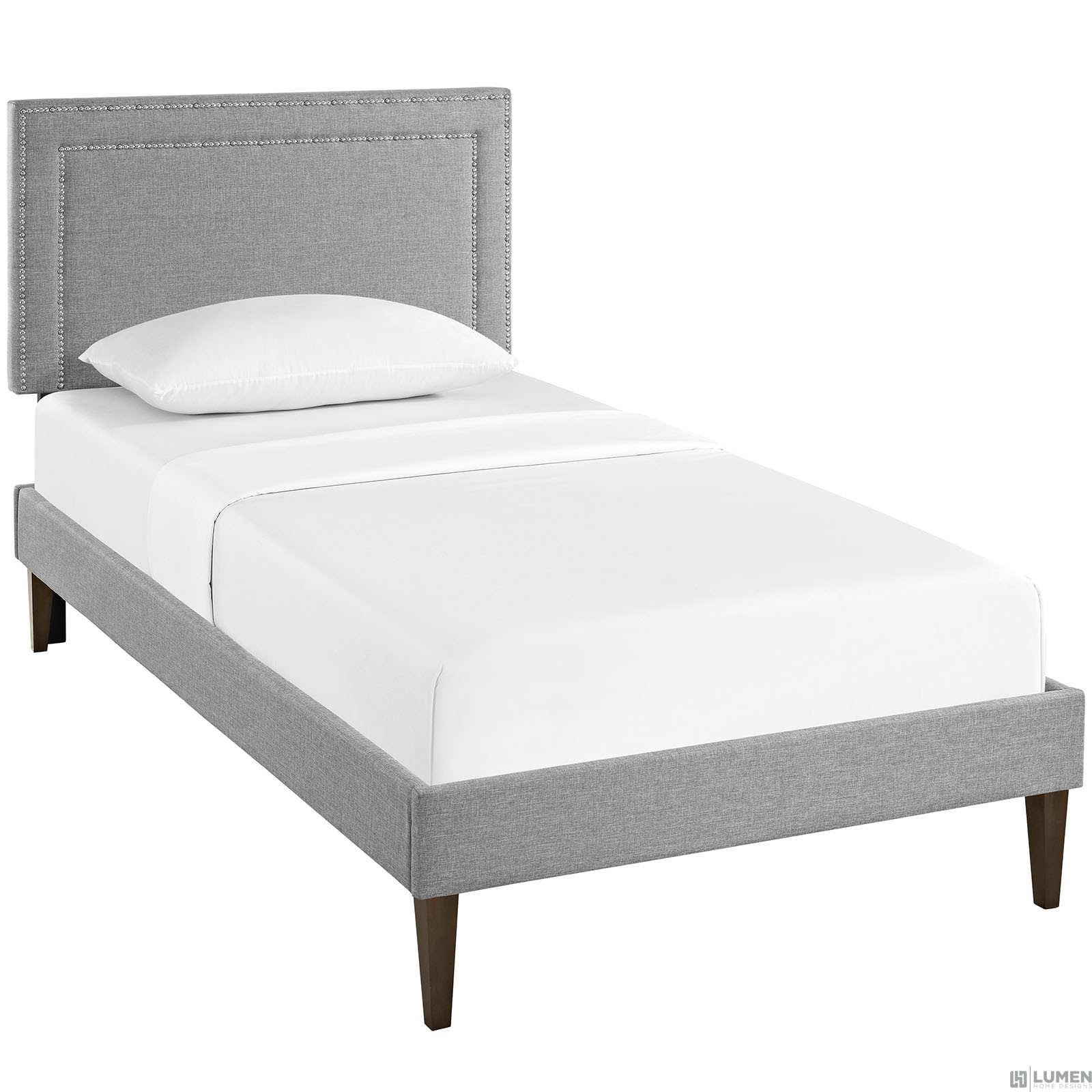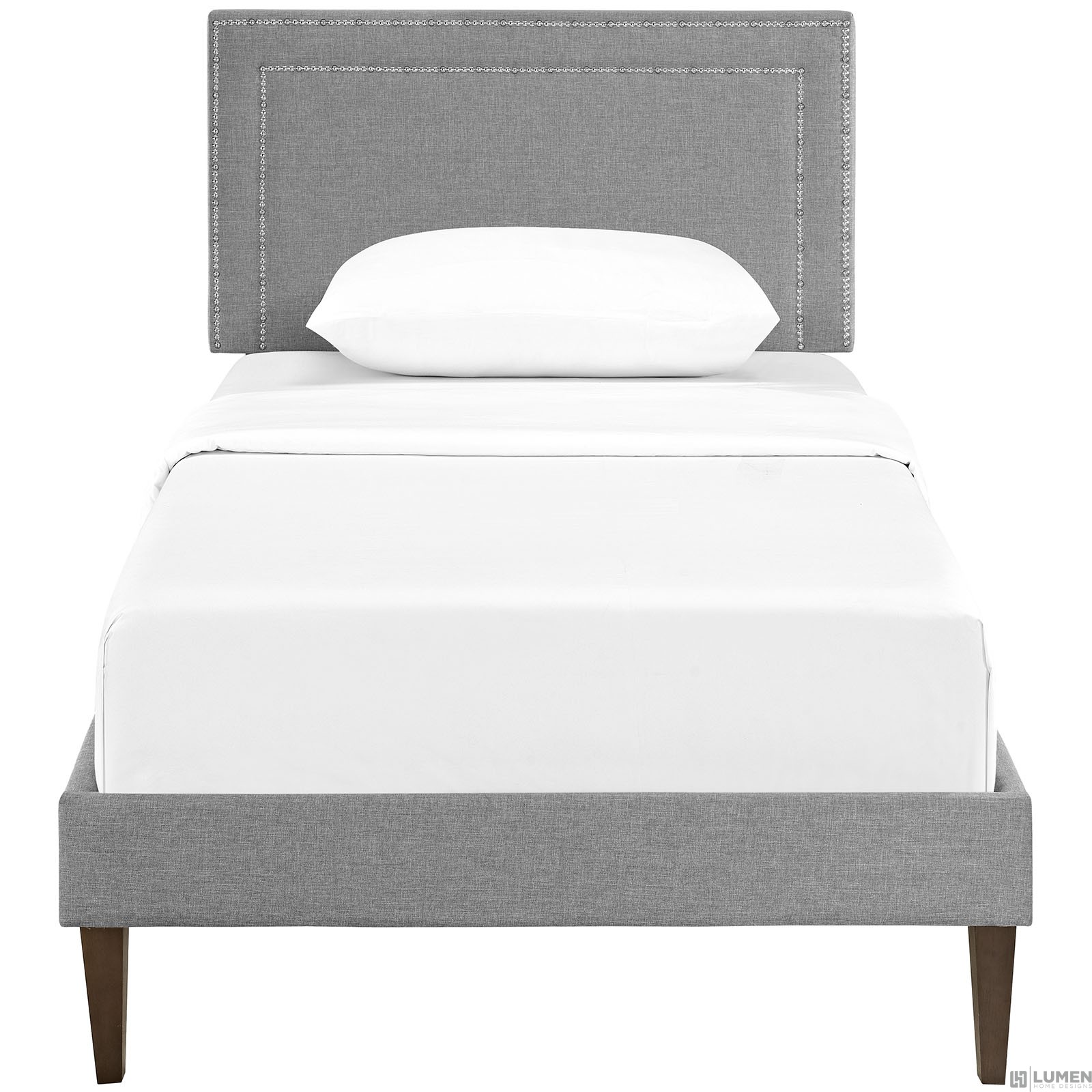 Short Description Fine Polyester Upholstery Ten Wood Support Slats Wood Frame / Particleboard Panel Center Rail with Support Two Legs Mounts in Four Locations Dense Foam Padding Non-Marking Foot Glides