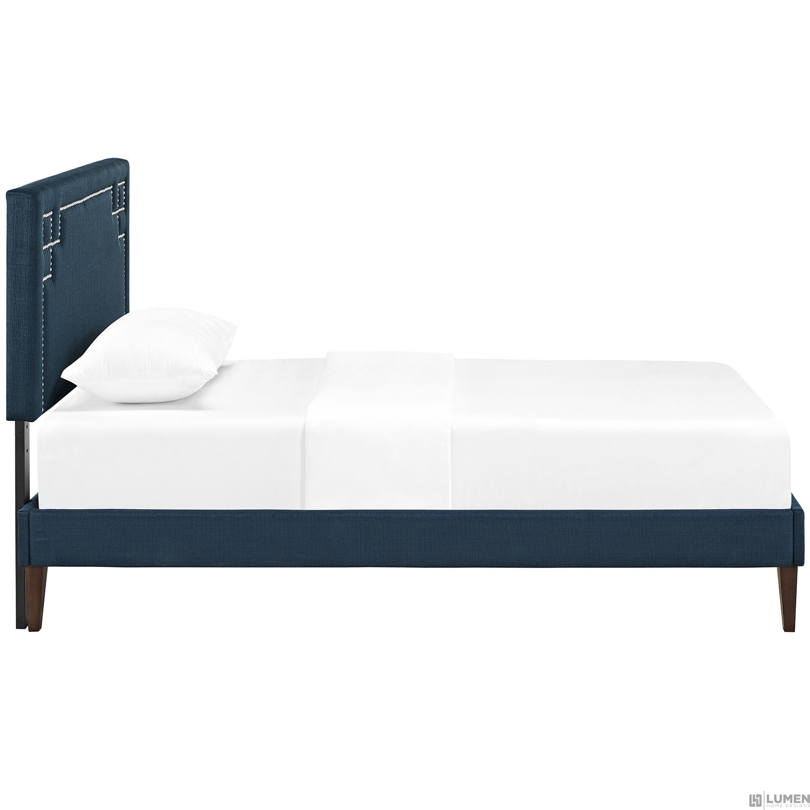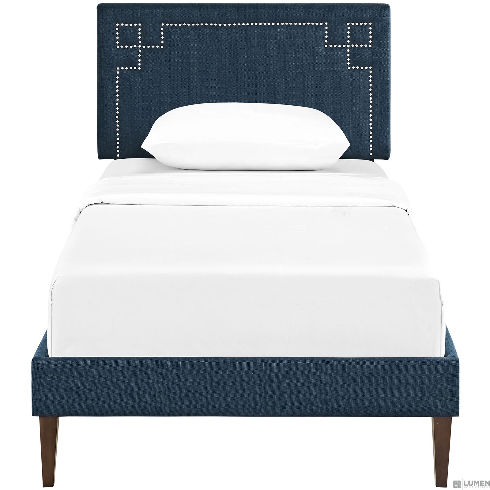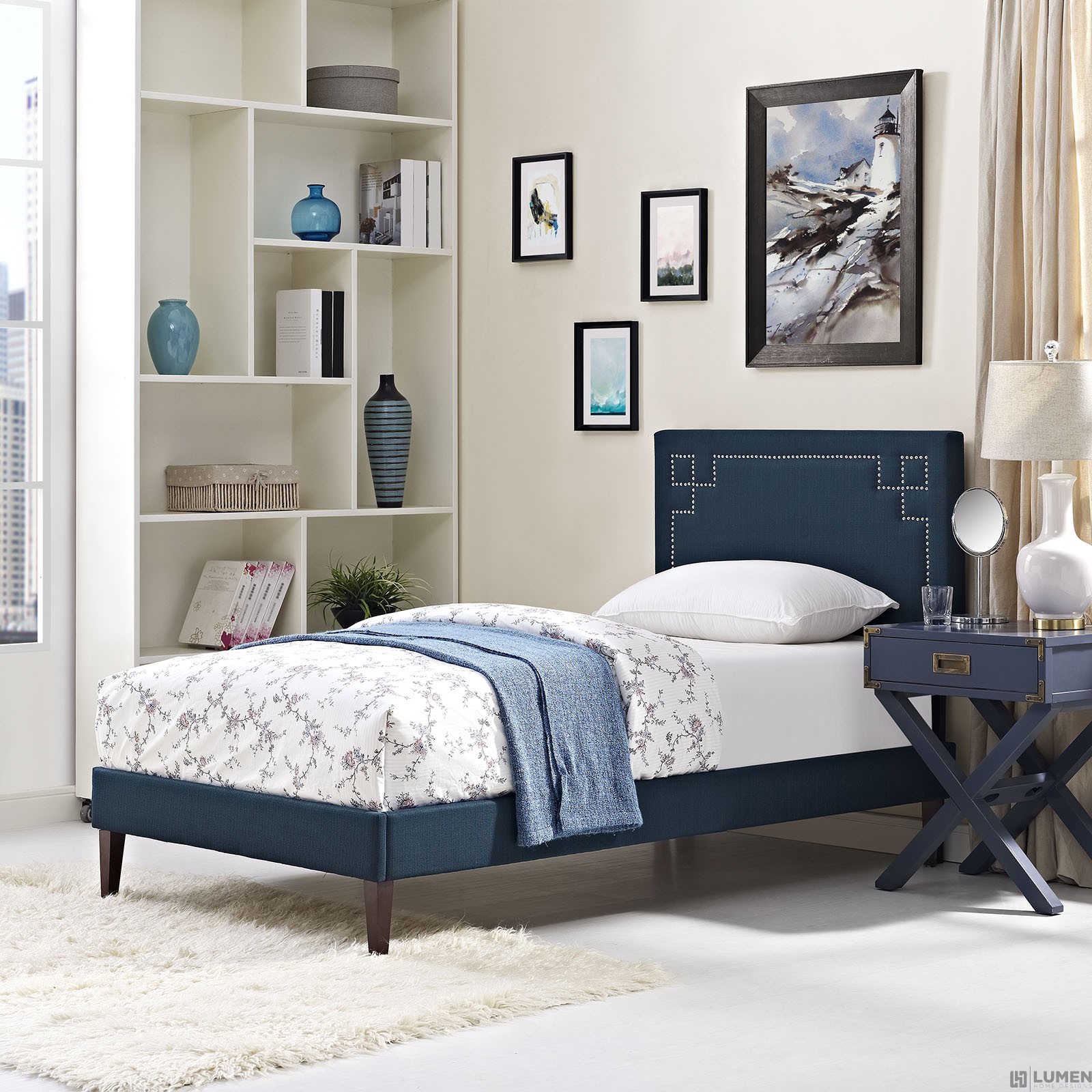 Short Description Fine Polyester Upholstery Ten Wood Support Slats Wood Frame / Particleboard Panel Center Rail with Support Two Legs Mounts in Four Locations Dense Foam Padding Non-Marking Foot Glides
