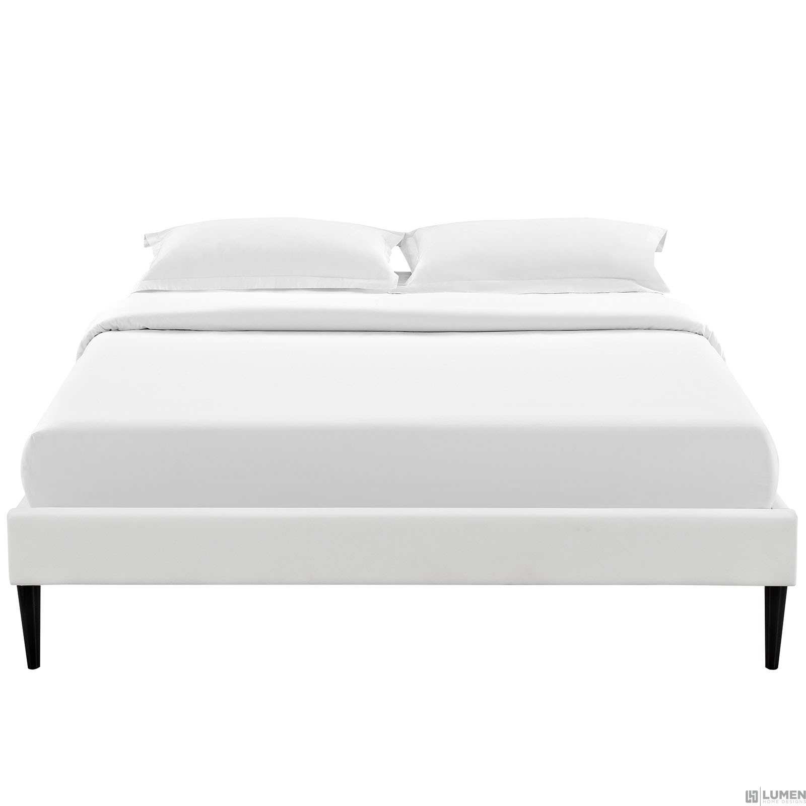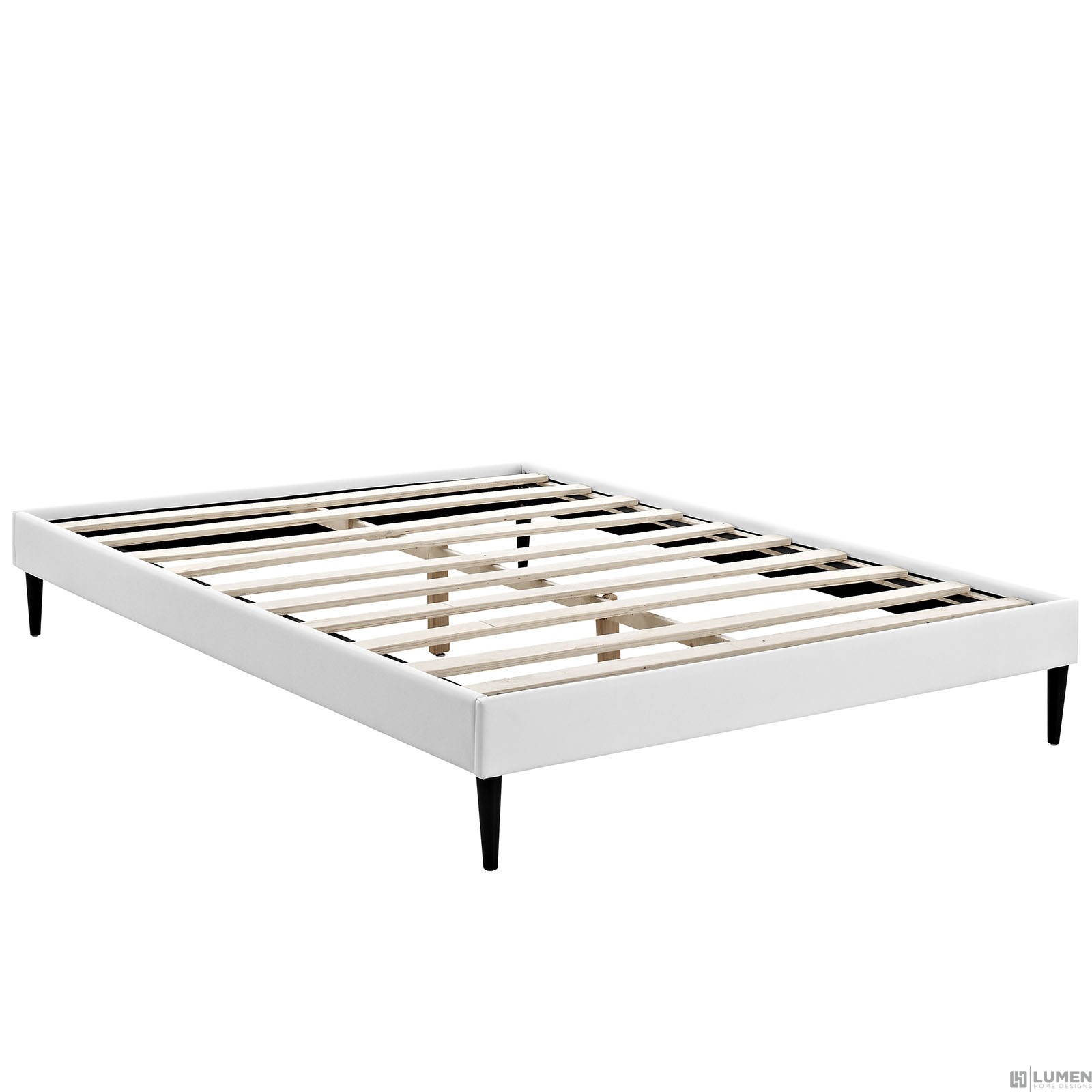 Short Description Solid Wood Frame Upholstered in Vinyl Ten Wood Support Slats Center Rail with Support Two Legs Non-Marking Foot Glides Mattress not Included Assembly Required
