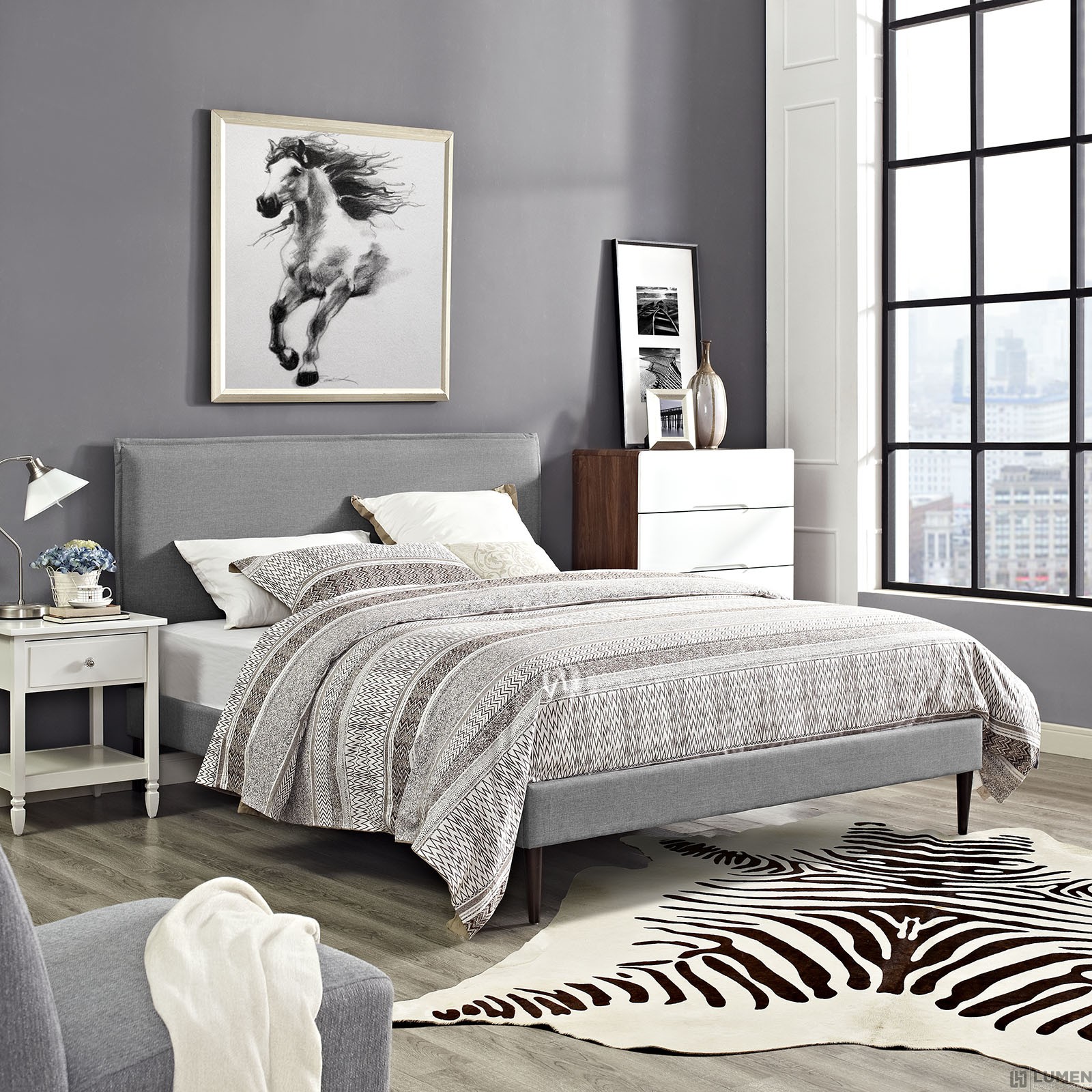 Fine Polyester Upholstery Ten Wood Support Slats Wood Frame / Particleboard Panel Center Rail with Support Two Legs Mounts in Four Locations Dense Foam Padding Non-Marking Foot Glides