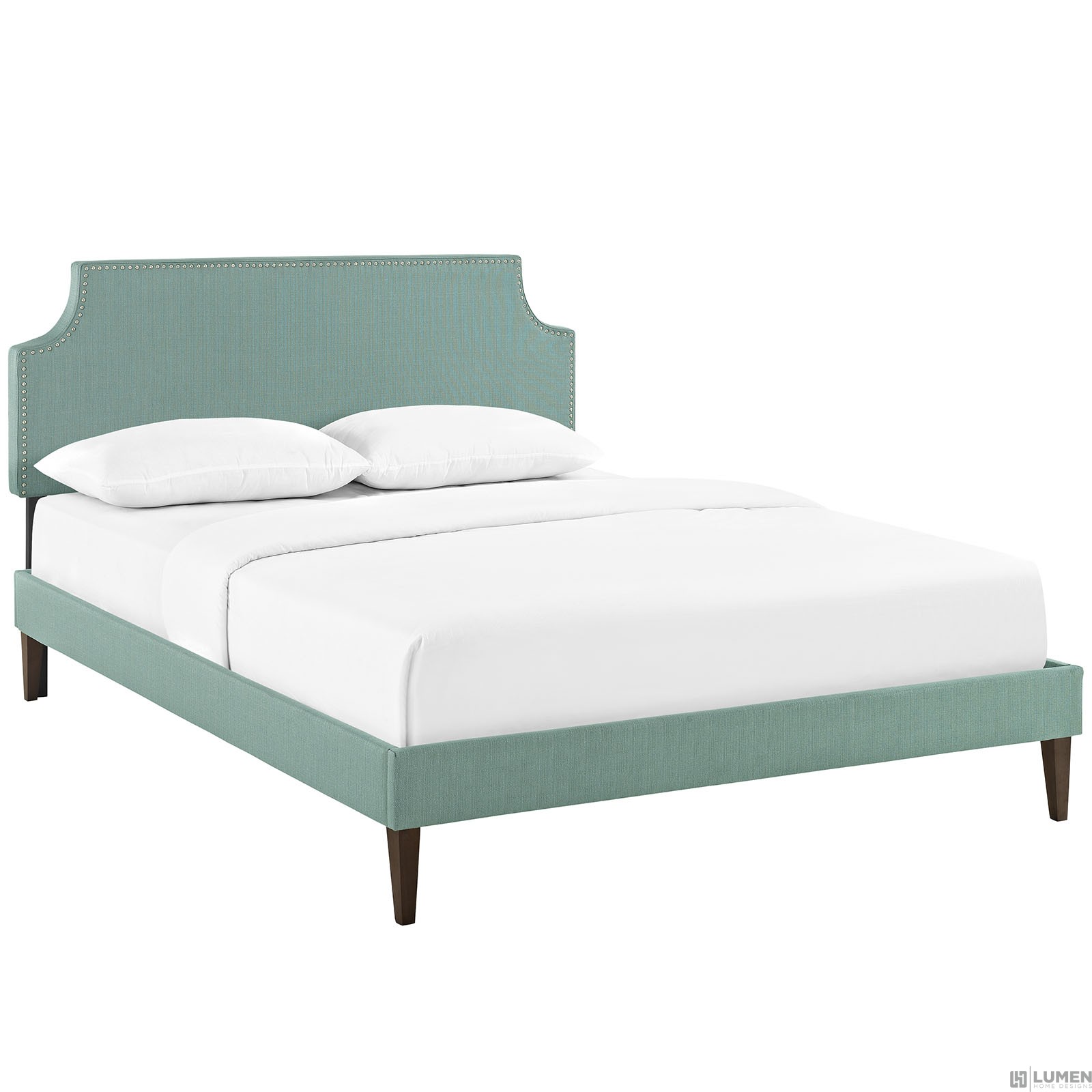 Short Description Fine Polyester Upholstery Ten Wood Support Slats Wood Frame / Particleboard Panel Center Rail with Support Two Legs Mounts in Four Locations Dense Foam Padding Non-Marking Foot Glides