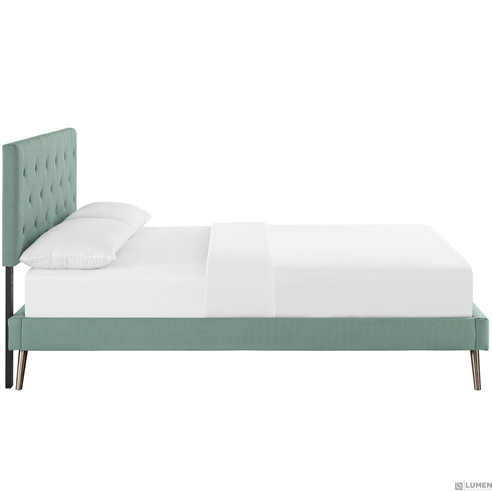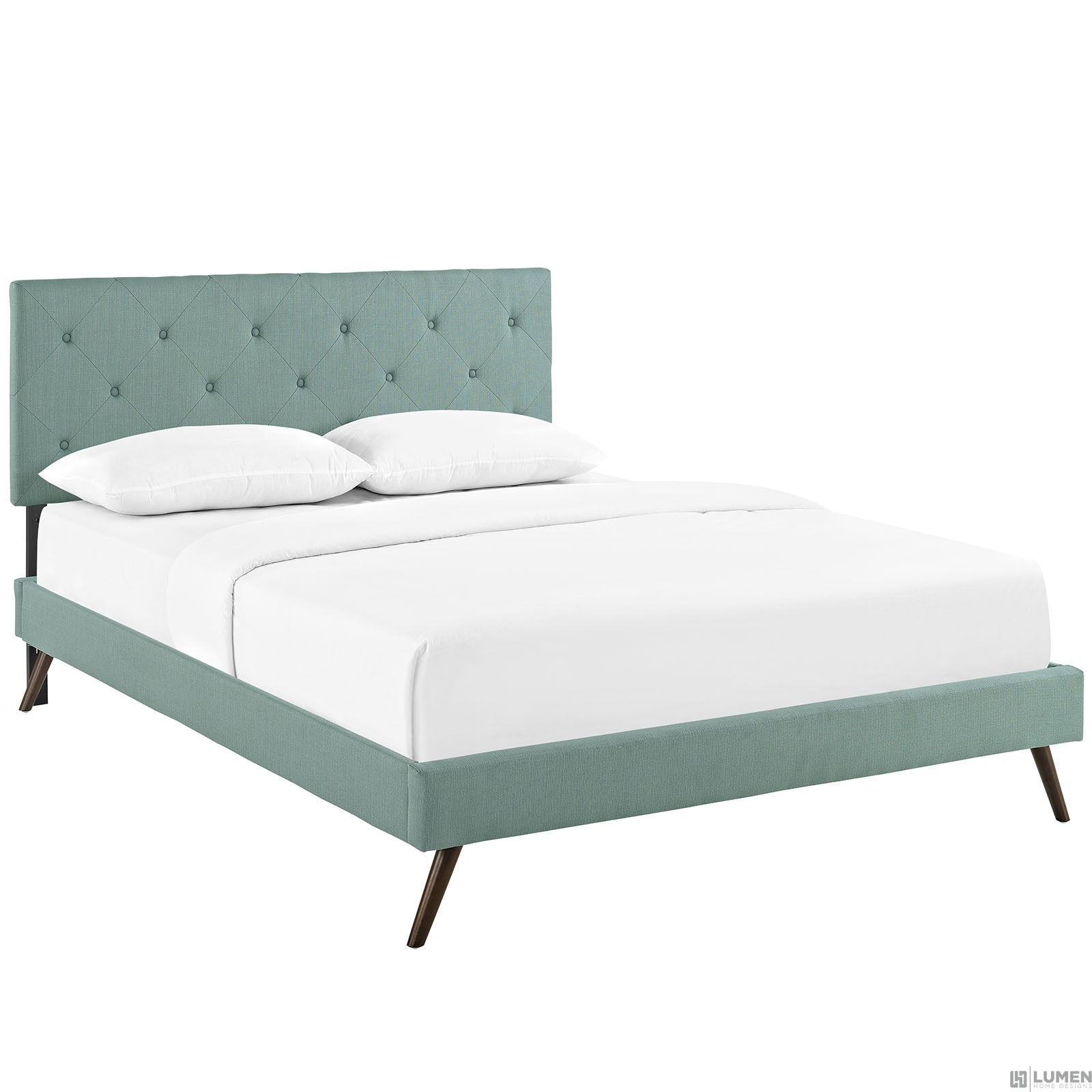 Short Description Fine Polyester Upholstery Ten Wood Support Slats Wood Frame / Particleboard Panel Center Rail with Support Two Legs Mounts in Four Locations Dense Foam Padding Non-Marking Foot Glides