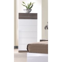 Short Description From our Ludlow Bedroom set, the retro modern lines of this chest feature two tone pieces with wood accents to warm up your space. Six roomy drawers provide handsome storage for bedrooms of all sizes, an ideal solution for those with tighter layouts. As with the rest of our Ludlow Set, this chest was crafted using premium solid wood veneers and natural lacquers. Matching bed, dresser and nightstands are also available. Essentials about this piece: Expertly crafted using solid wood veneers and natural lacquers. Premium soft closing tracks. No assembly required. Color scheme: Walnut and White. Dimensions: 50" H x 23.8" L x 19.1" D. Other pieces in this set sold separately.