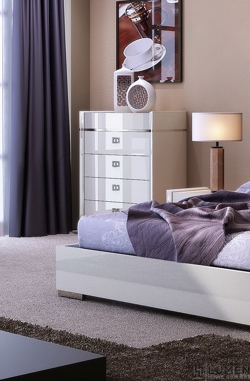 From our Madison Bedroom set, this nightstand combines classic and clean design lines with high drama finishes. High gloss lacquers run throughout this piece with subtle and delicate stainless steel accents completing the look. This nightstand comes with one ample drawer so you can discreetly store all of your bedside necessities. High quality wood veneers and natural lacquers make up this sophisticated piece. Matching bed, chest, mirror and dresser are also available. Essentials about this piece: Expertly crafted using solid wood veneers and natural lacquers. Stainless steel hardware. Premium soft closing tracks. No assembly required. Color scheme: Light Grey, high gloss. Dimensions: 21" H x 24" L x 17.5" D. Other pieces in this set sold separately.