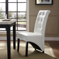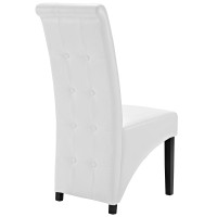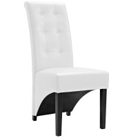 Modern dining chair Faux leather upholstery Dense foam padding for comfort Rubberwood and pine frame Non-marking foot caps Assembly Required