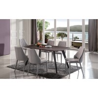 Short Description Ultramodern and chic, our mod chairs will add visual interest to any dining room or even a desk. They are armless to comfortably fit tables of any height. Their timeless design features a cozy finish in premium fabrics, easy to spot clean with any household cleanser. This sleek chair will make the perfect complement to one of our tables or to refresh an existing dining room. Essentials about this piece: • Expertly finished in premium fabrics. • Some assembly required. • Table and chairs each sold separately. • Color scheme: Dark oak, grey. • Dimensions: 22.8" L x 19.6" W x 34.6" H.