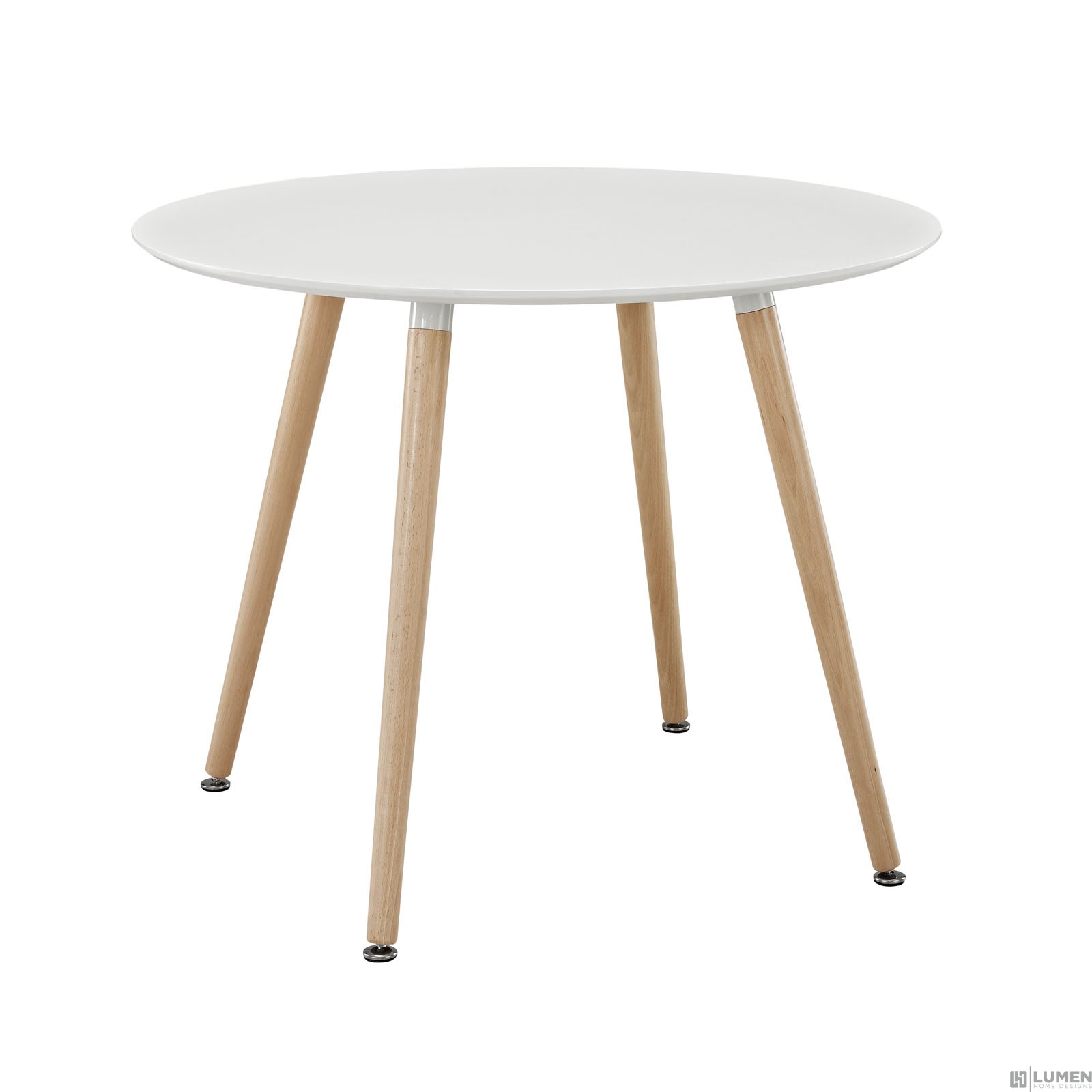 Solid Beechwood Legs Fiberboard Top Round Dining Table Plastic non-marking foot caps