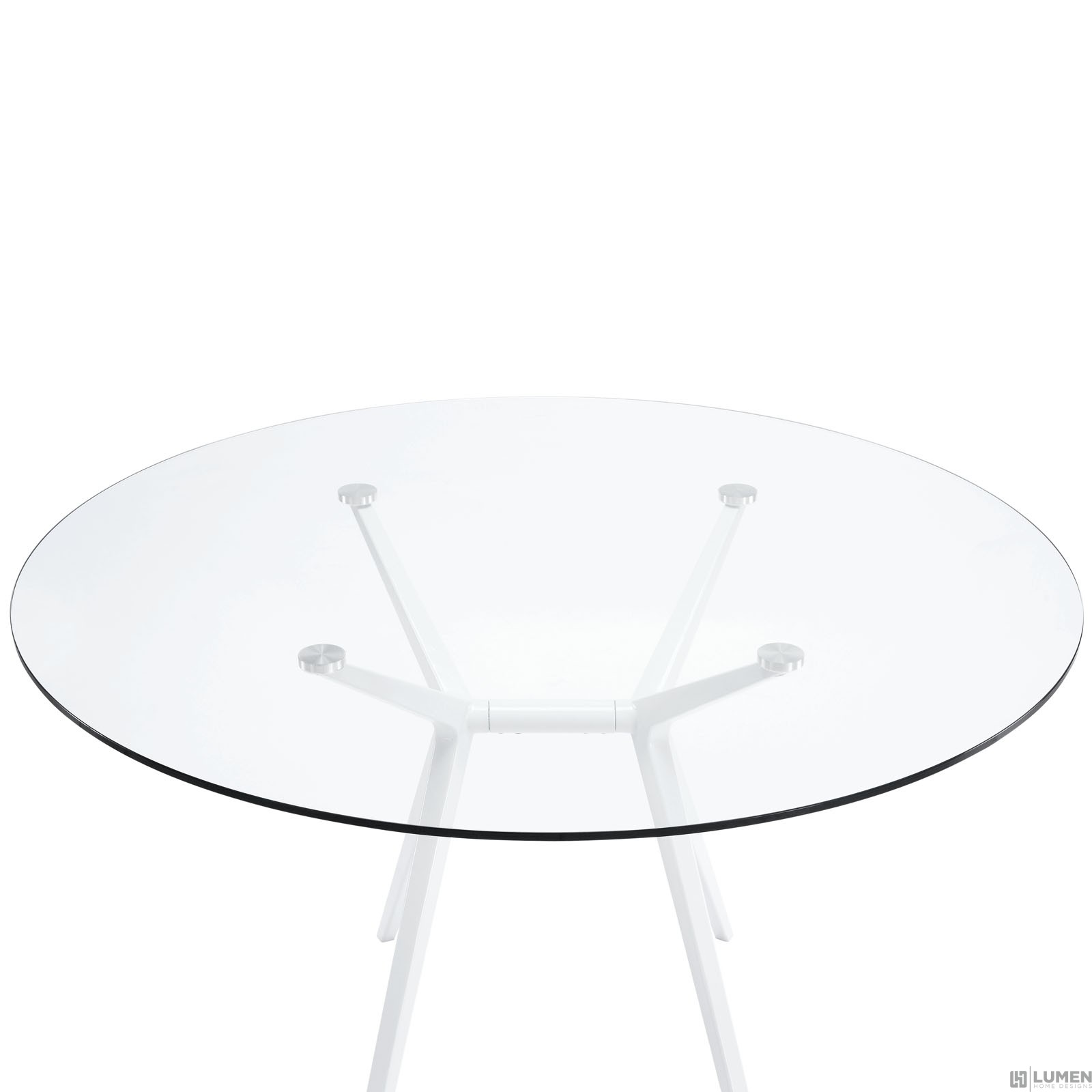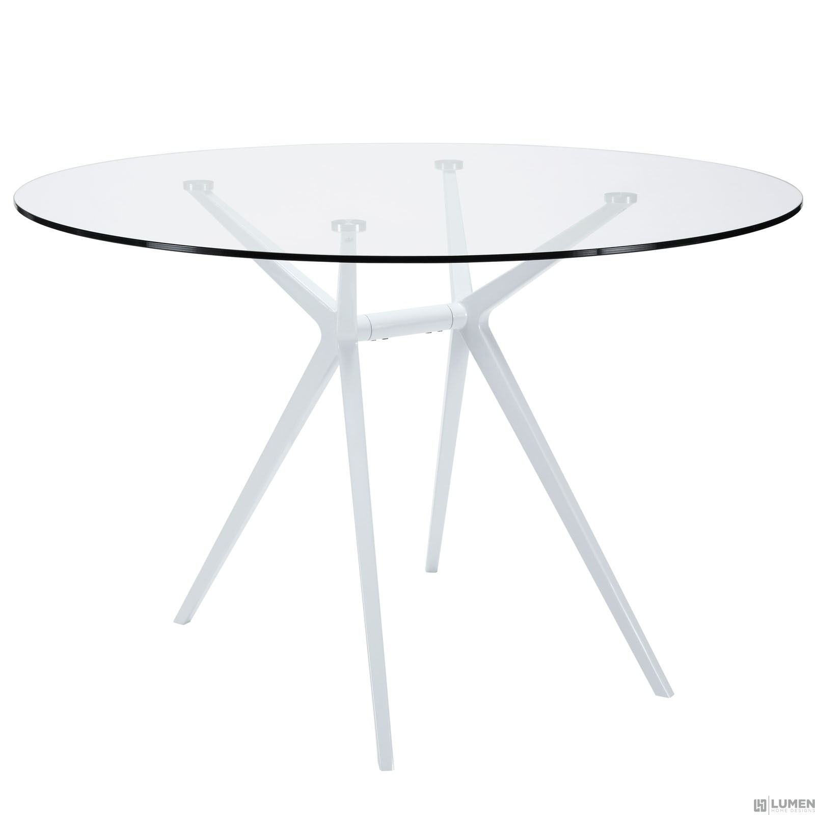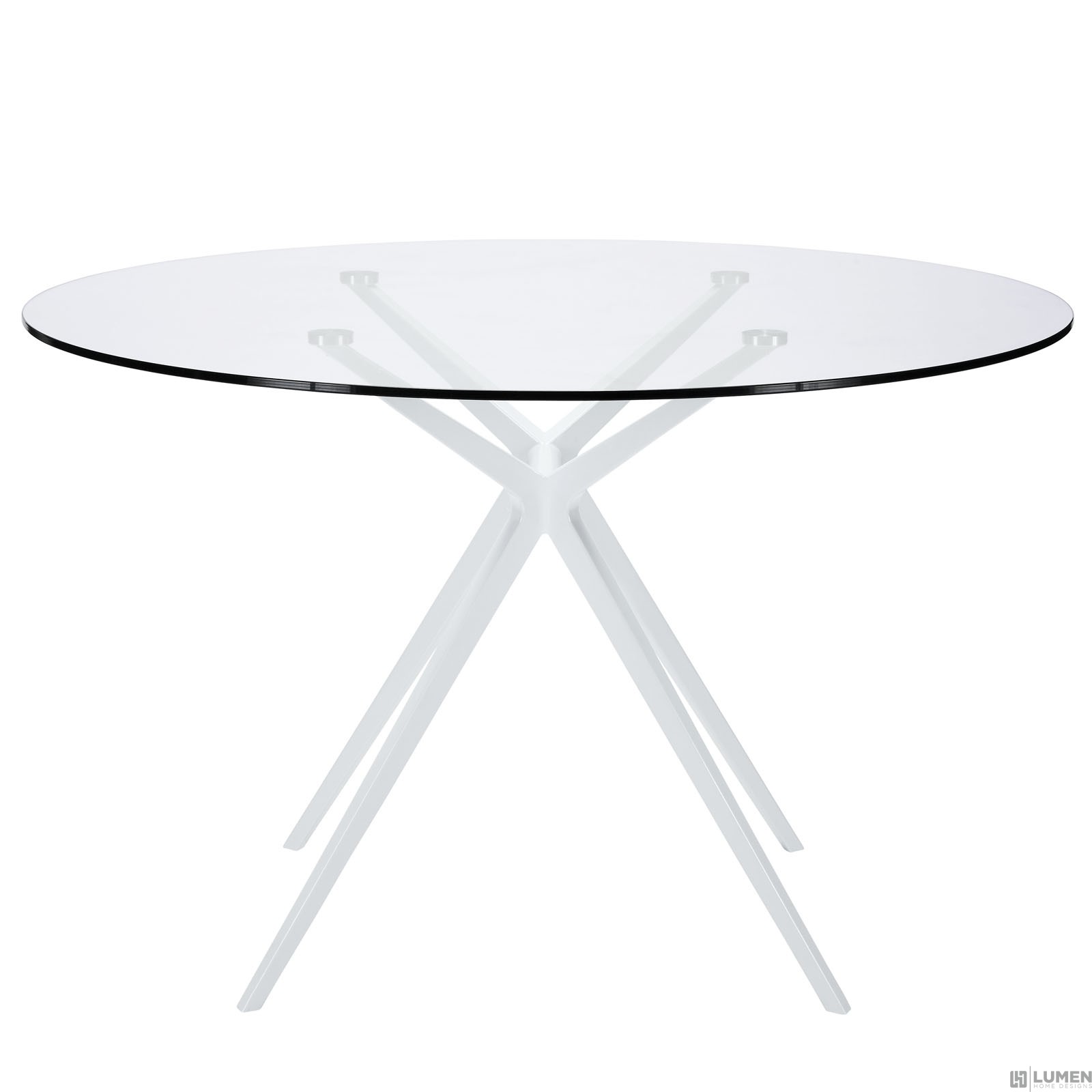 Modern dining table Over-shaped tempered glass top Powder coated metal legs Easy wipe clean surface