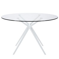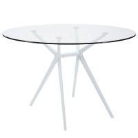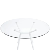 Short Description Modern dining table Over-shaped tempered glass top Powder coated metal legs Easy wipe clean surface