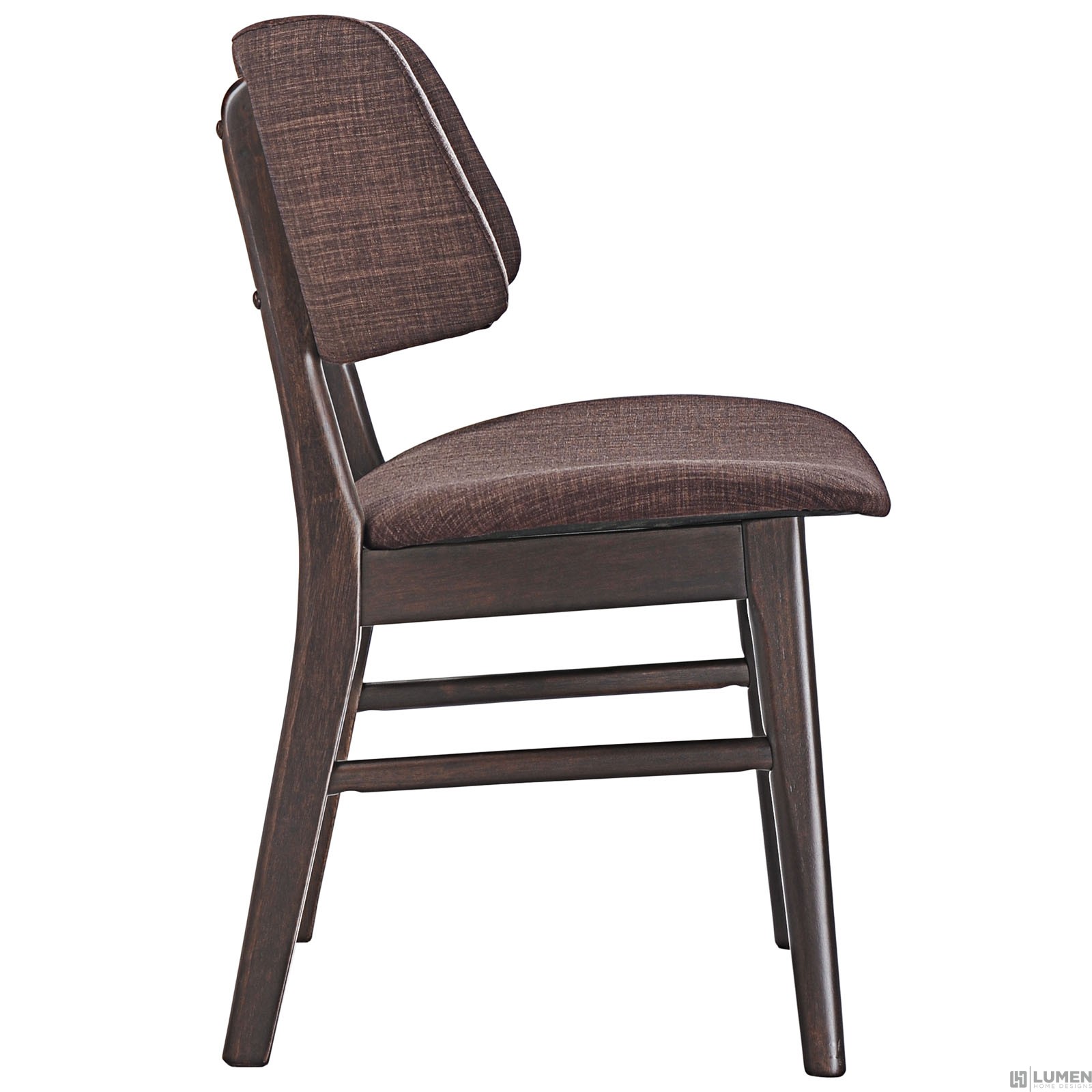 Short Description Vintage Modern Dining Chair Wood-Grained Dark Walnut Veneer Linen upholstered foam Requires Assembly Weight Capacity: 220 Pounds