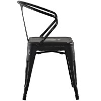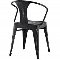 Modern Dining Arm Chair Power Coated Steel Distressed Finish Some Assembly Required Non-Marking Feet Caps