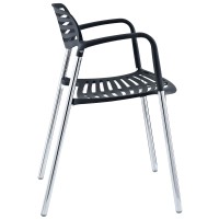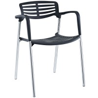 Short Description Sleek meeting or event chair Sturdy chrome metal construction Hard plastic seat and arm coating Fully stackable Comes fully assembled