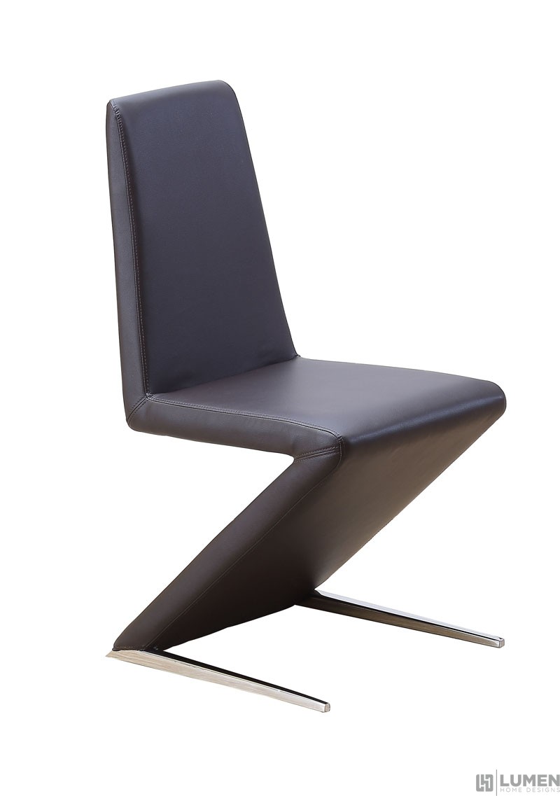 Short Description Sure to make a statement in your dining room, our unique chairs feature a zig zag profile inspired by modern design styles. For added comfort, the seat is fully upholstered in crisp leatherette with a touch of foam padding. Sleek chrome legs peeking at the bottom complete this urban look. Our exclusive chairs will make the perfect complement to your existing dining table or better yet, in a brand new space. Choose your color, or even better, mix and match them: black, grey or white with chrome accents. Essentials about this piece: • Expertly finished in leatherette and stainless steel. • No assembly required. • Table and chairs each sold separately. • Color scheme: Black, Grey or White, with chrome accents. • Dimensions: 19" L x 17" W x 37" H.