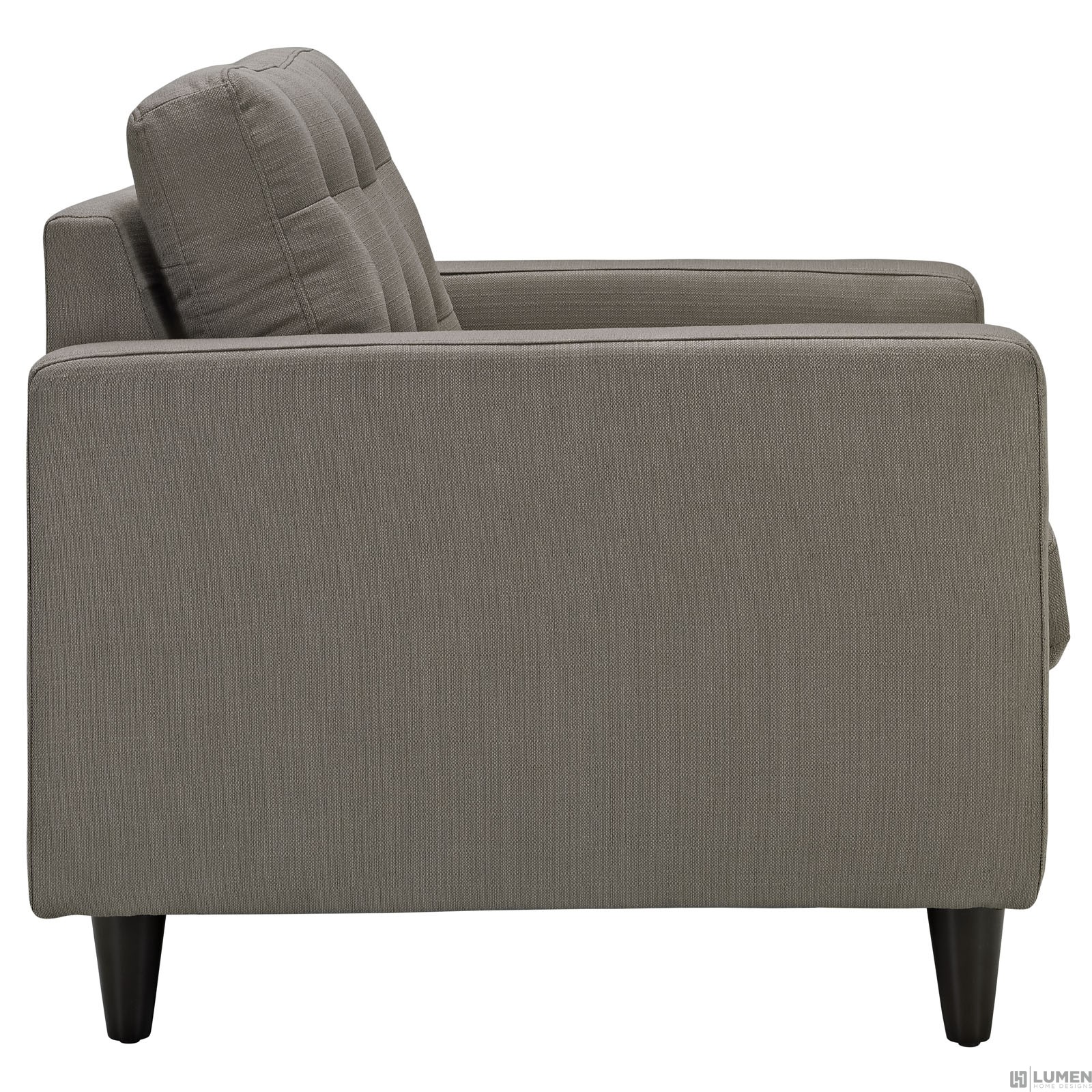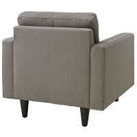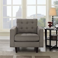 Short Description Modern armchair Deeply tufted buttons Polyester upholstery Solid wooden legs Glides to prevent scratching