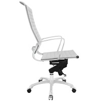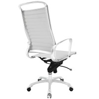 Short Description Modern high back office chair Chrome-plated aluminum frame Ribbed vinyl cushioning Tension control knob and lock 360 Degree Swivel Five dual-wheeled casters Fully height adjustable
