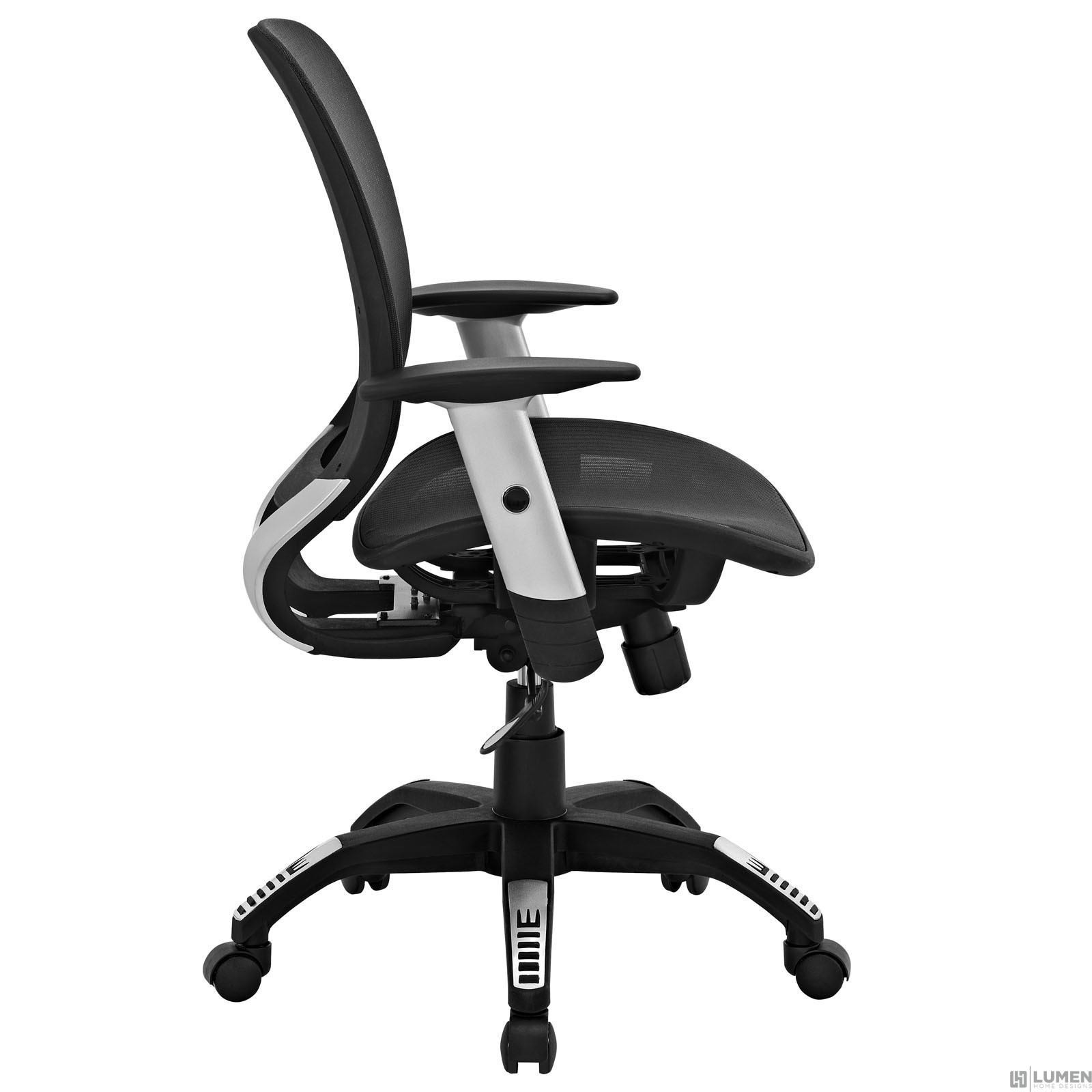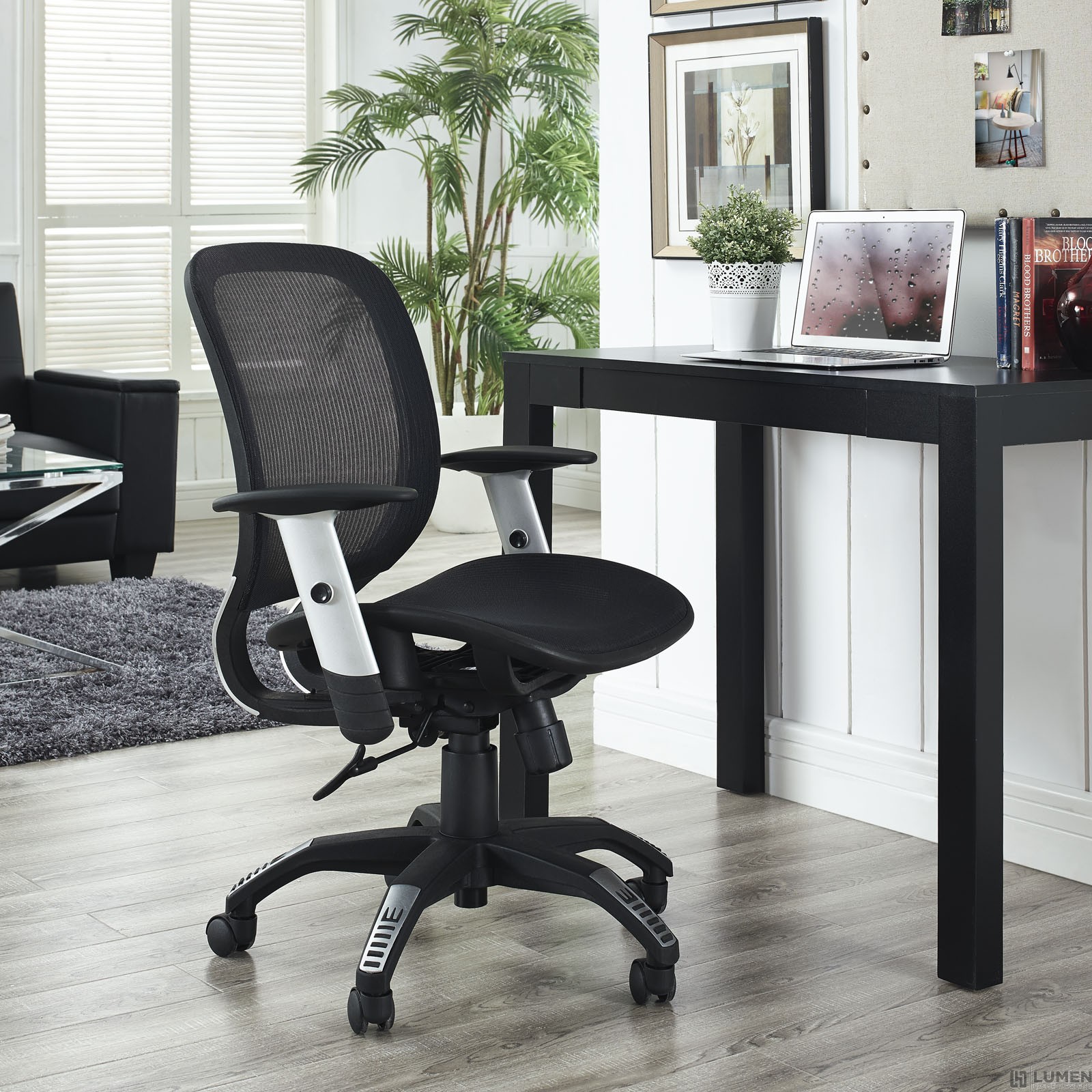 Suspension mesh weave seat and back Height adjustable vinyl armrests Five hooded dual-wheel casters Lock in any seat back position Dual-tone nylon base Tilt tension control knob "Height adjustable, 360 swive" Assembly Required