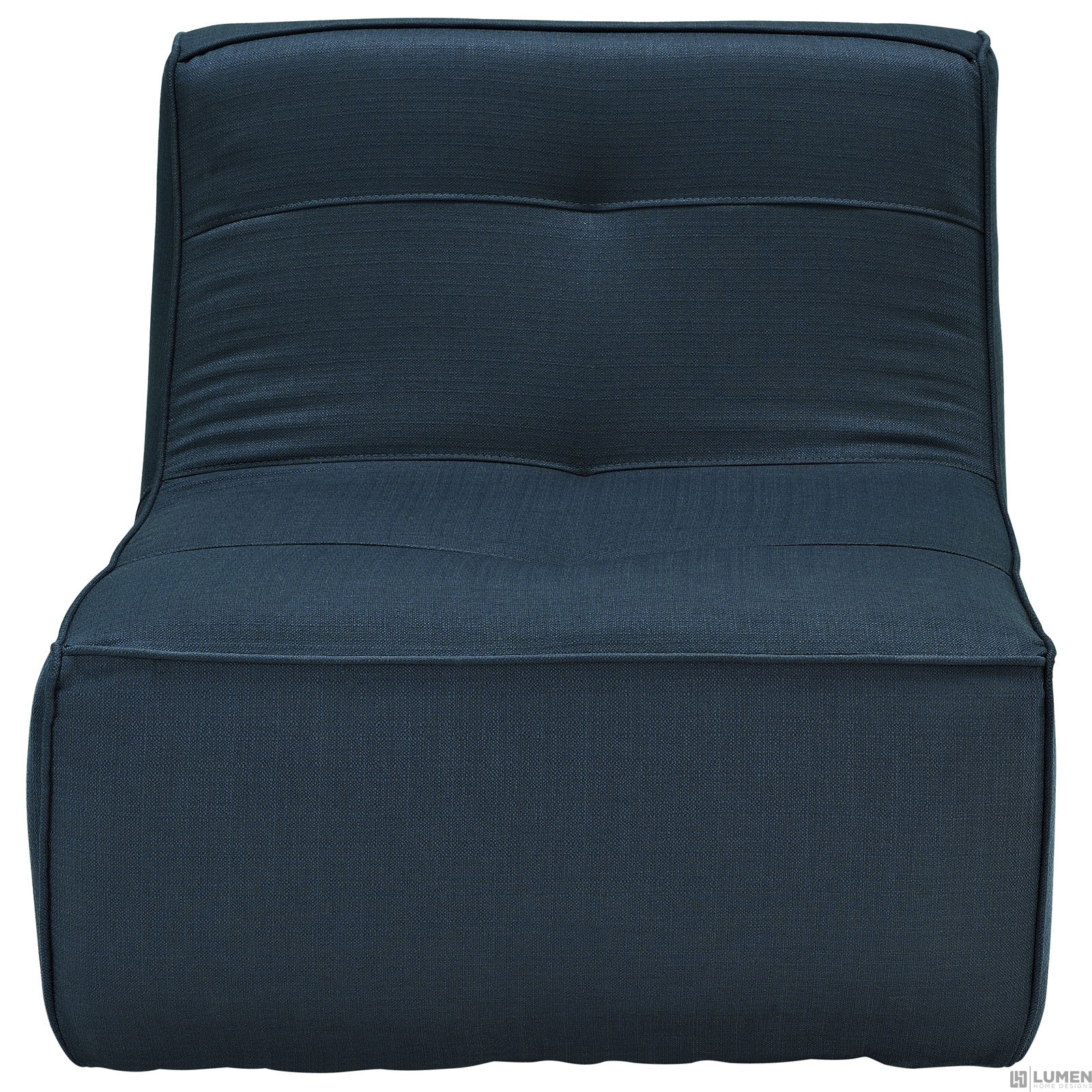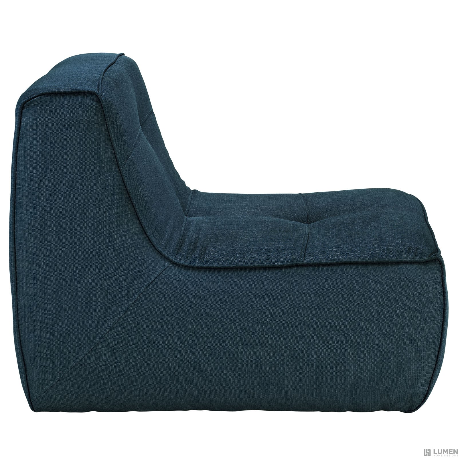 Modern Armchair Upholstered in fine fabric Foam padded cushions Slight trim and button tufting Wipe clean with dry cloth Solid wooden legs Black plastic foot glides