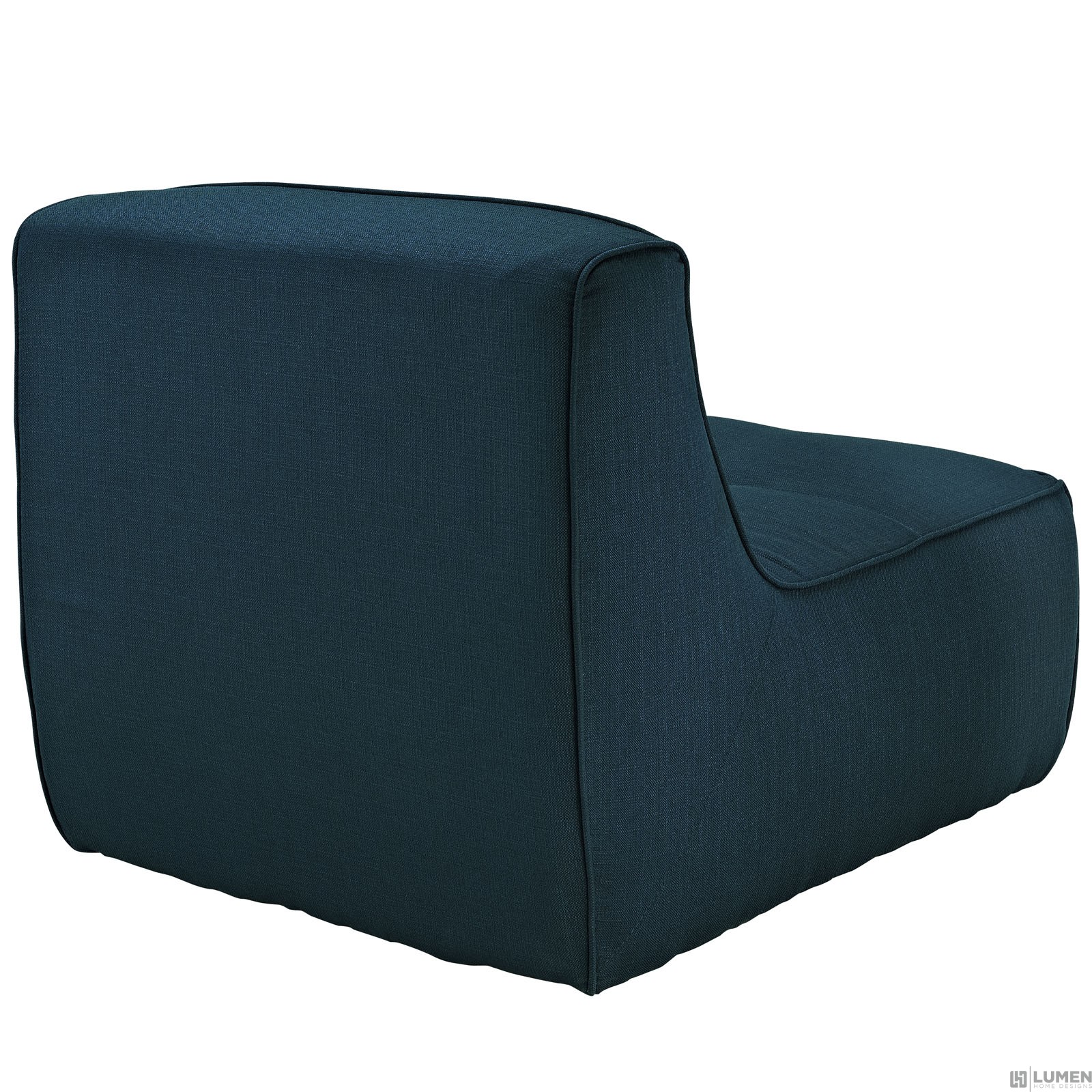 Short Description Modern Armchair Upholstered in fine fabric Foam padded cushions Slight trim and button tufting Wipe clean with dry cloth Solid wooden legs Black plastic foot glides