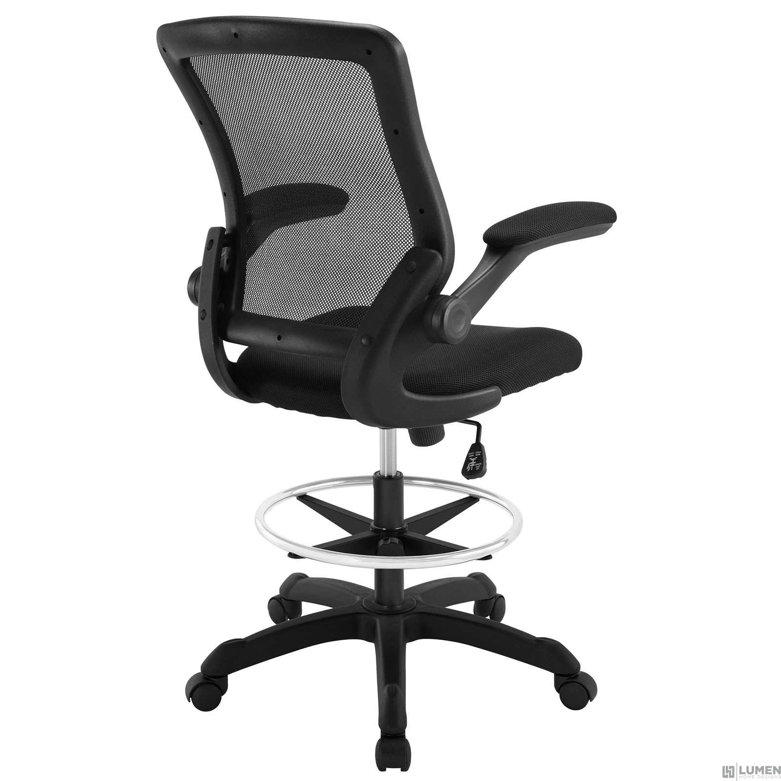 Short Description 90 Degree Flip-up arms Breathable mesh back Foam seat covered w/ a mesh fabric Pneumatic height adjustment Tall pneumatic gas cylinder Tilt tension control Weight Capacity: 331 Pounds Assembly Required