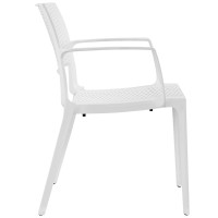 Contemporary dining chair Durable polypropylene construction Criss-cross design Foot caps to prevent scratching No assembly needed