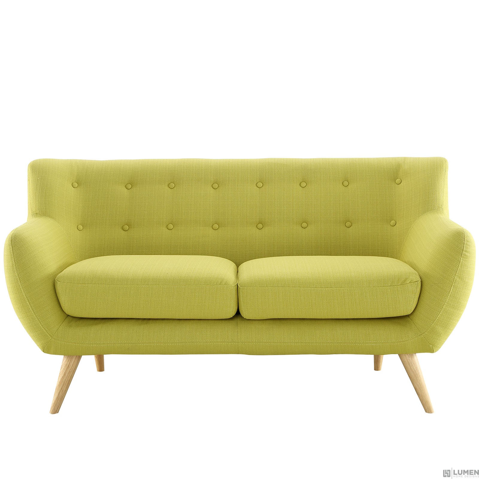 Mid-century modern style Loveseat Natural color rubber wood legs Non-marking foot caps 100% polyester material No assembly required Chair Weight Capacity - 441 lbs.