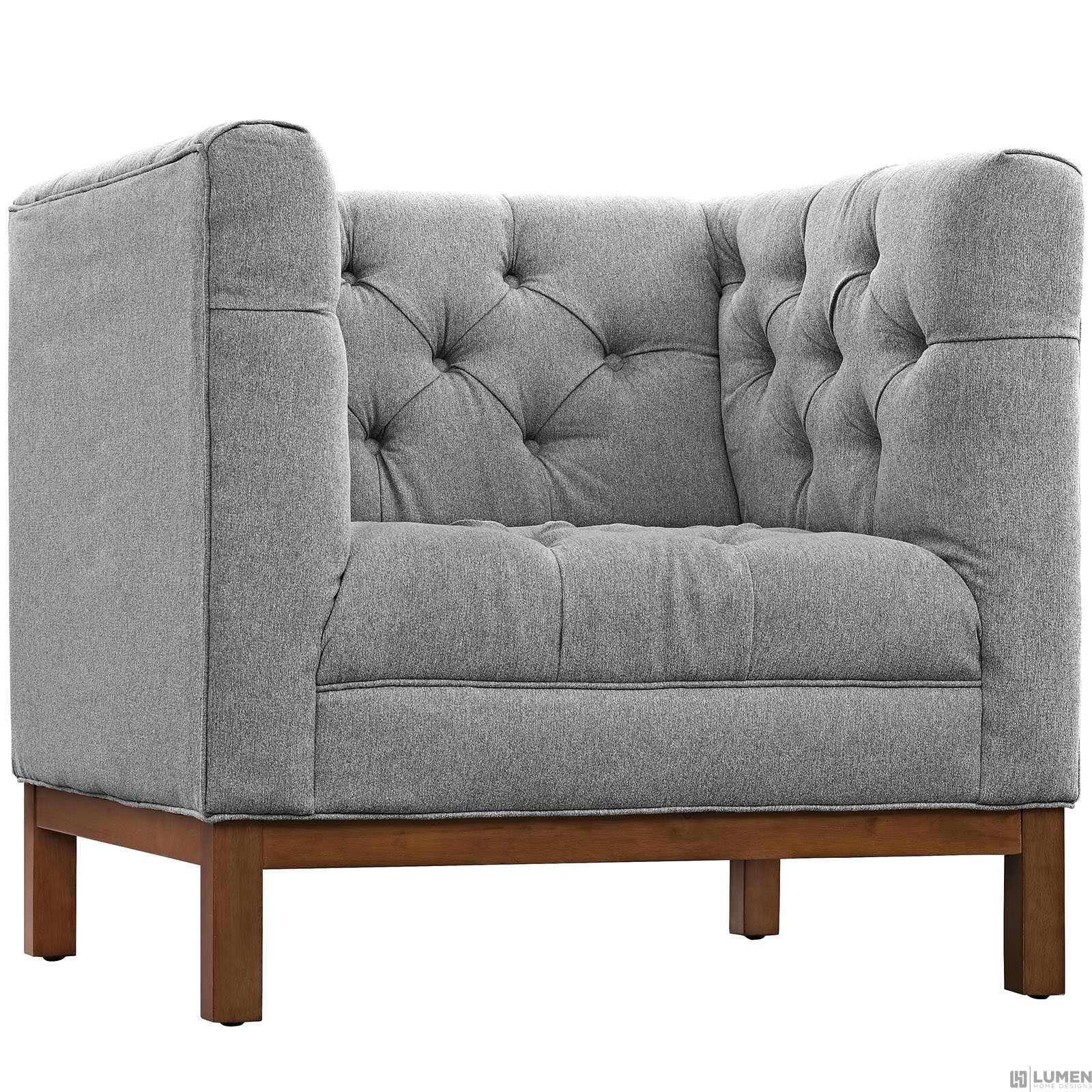 Short Description Walnut Stained Beech Wood Legs Plastic Floor Glides Finely Upholstered Fabric Armchair Weight Capacity - 441